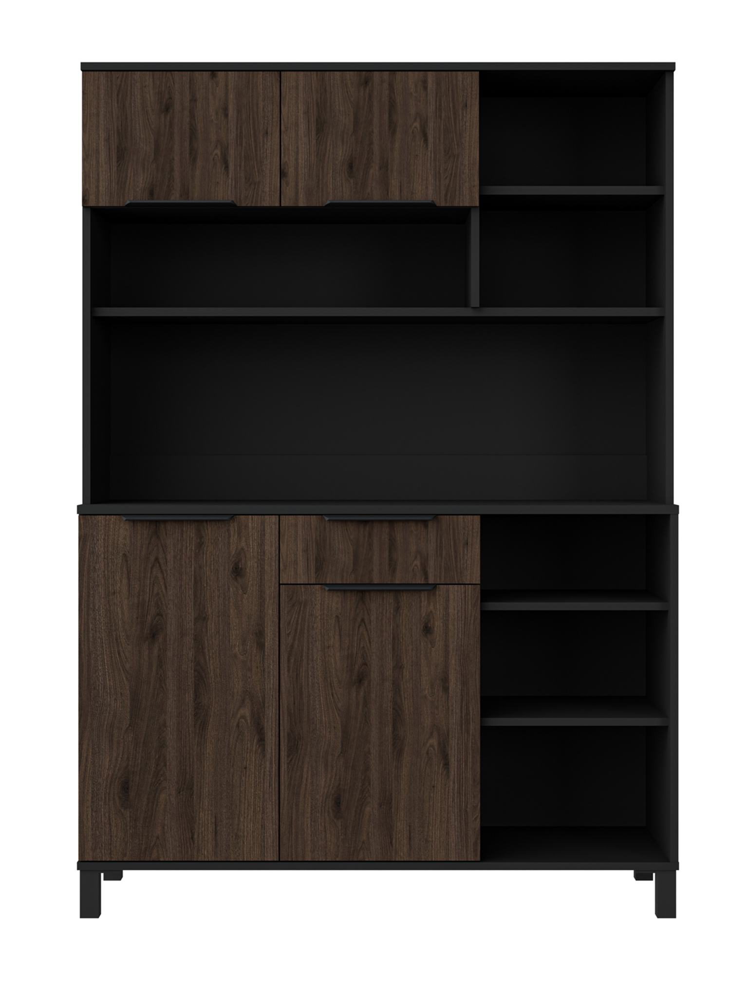 Kolekcja mebli MEGI wprowadza nowoczesny styl do przestrzeni, nadając jej niepowtarzalny charakter. Połączenie naturalnego odcienia orzecha z matową czernią sprawia, że kompozycje stają się wyjątkowe. Stylizowane uchwyty krawędziowe oraz czarne korpusy mebli przyciągają uwagę. Meble kuchenne MEGI są tworzone z wysokogatunkowych materiałów, co gwarantuje trwałość i solidność. Korpus oraz front wykonany z płyty laminowanej o grubości 16 mm.