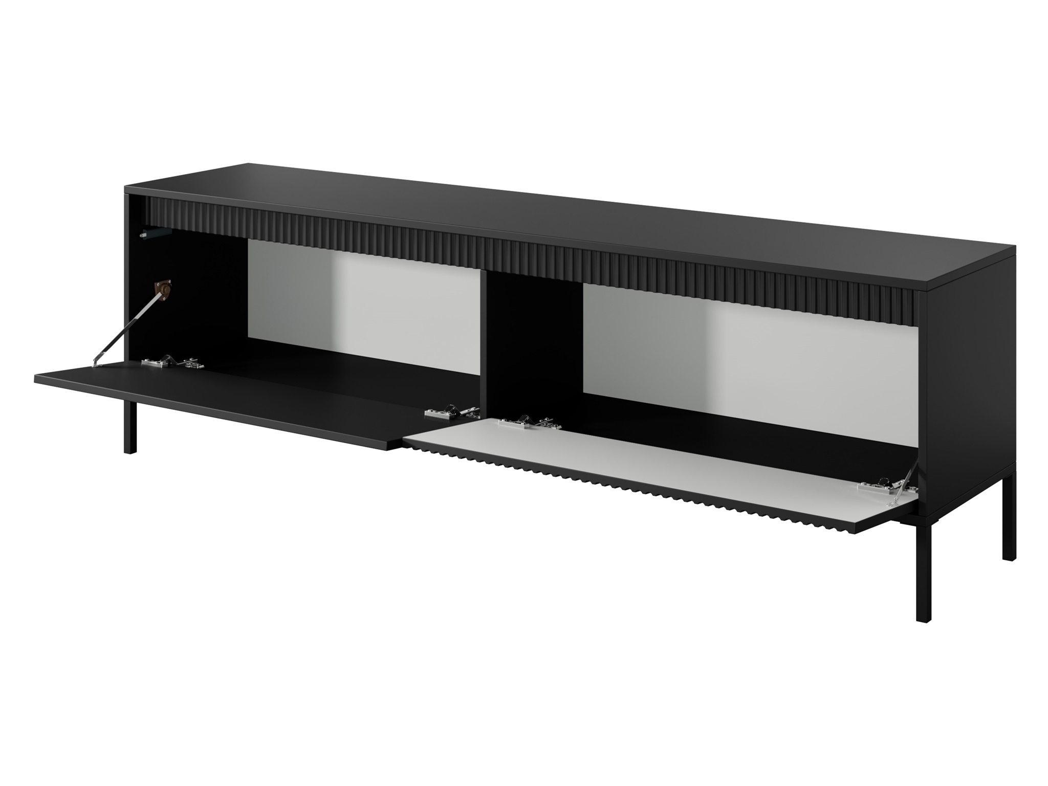 Matowa czerń, subtelne pionowe frezowania i lekkie, metalowe nóżki tworzą wyjątkowo elegancki, a jednocześnie nowoczesny charakter wnętrza.