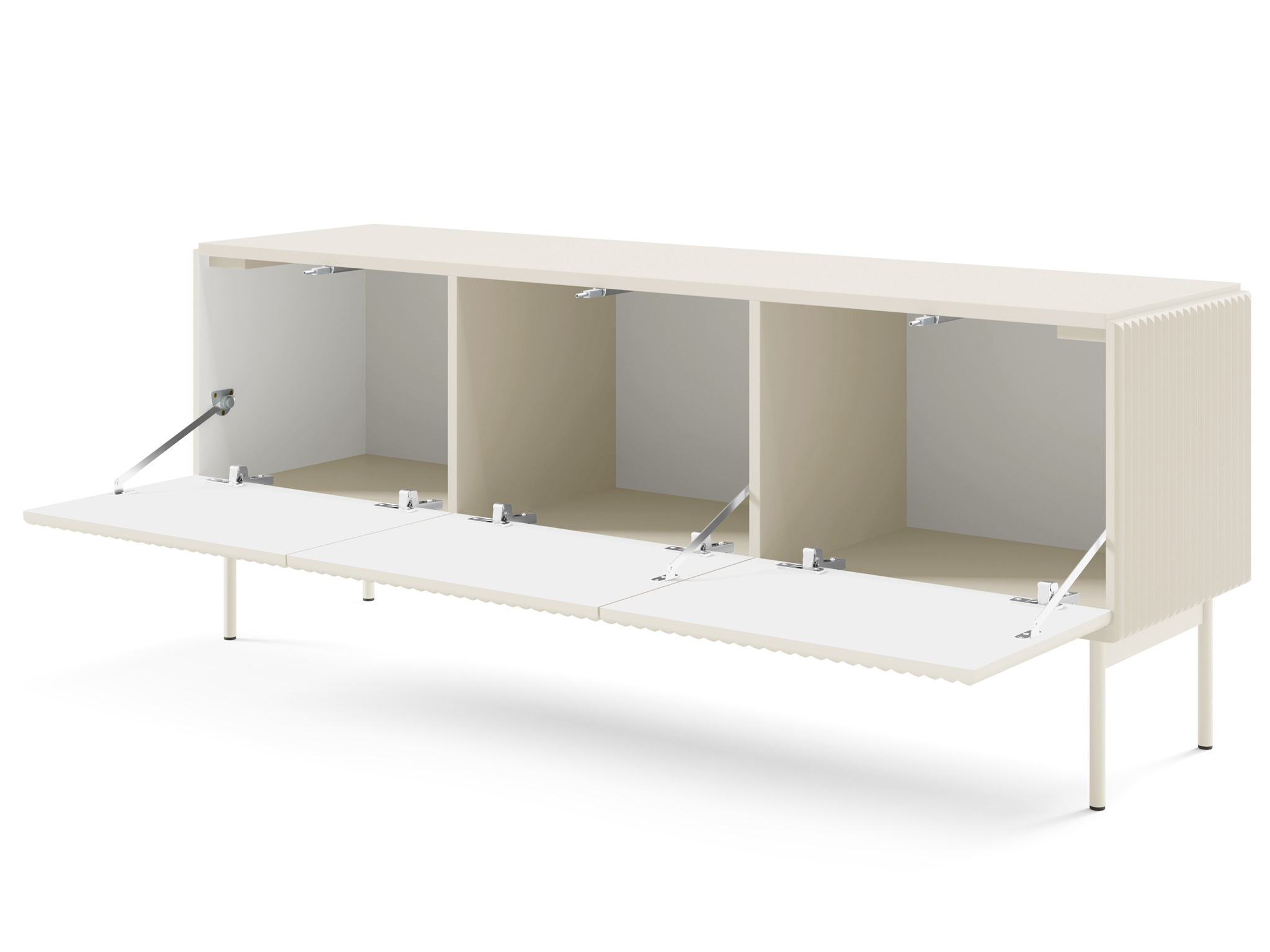 Wyjątkowy design – ryflowane powierzchnie przełamują gładką płytę w kolorze kaszmiru, tworząc luksusowy efekt, który przyciąga wzrok.