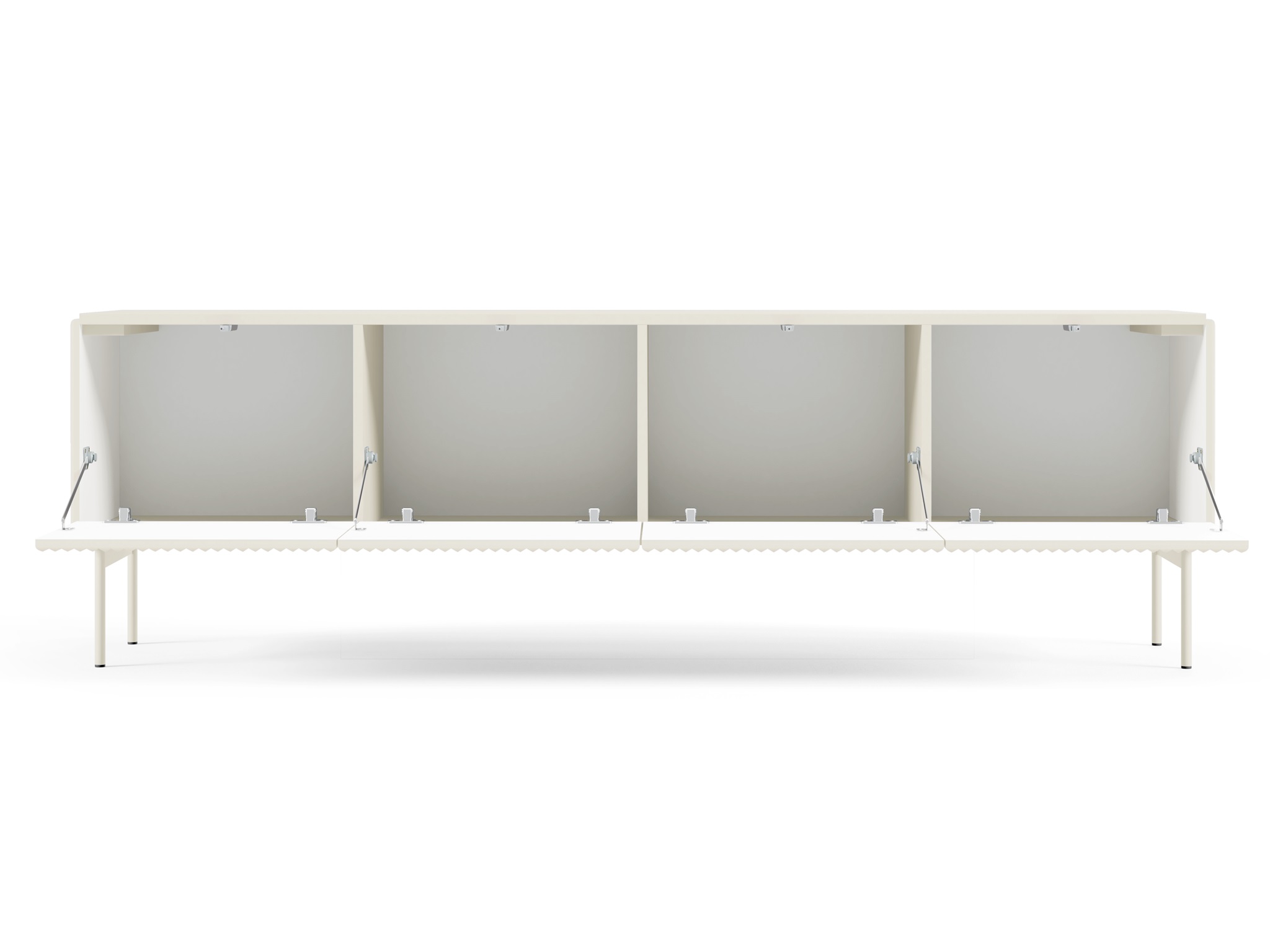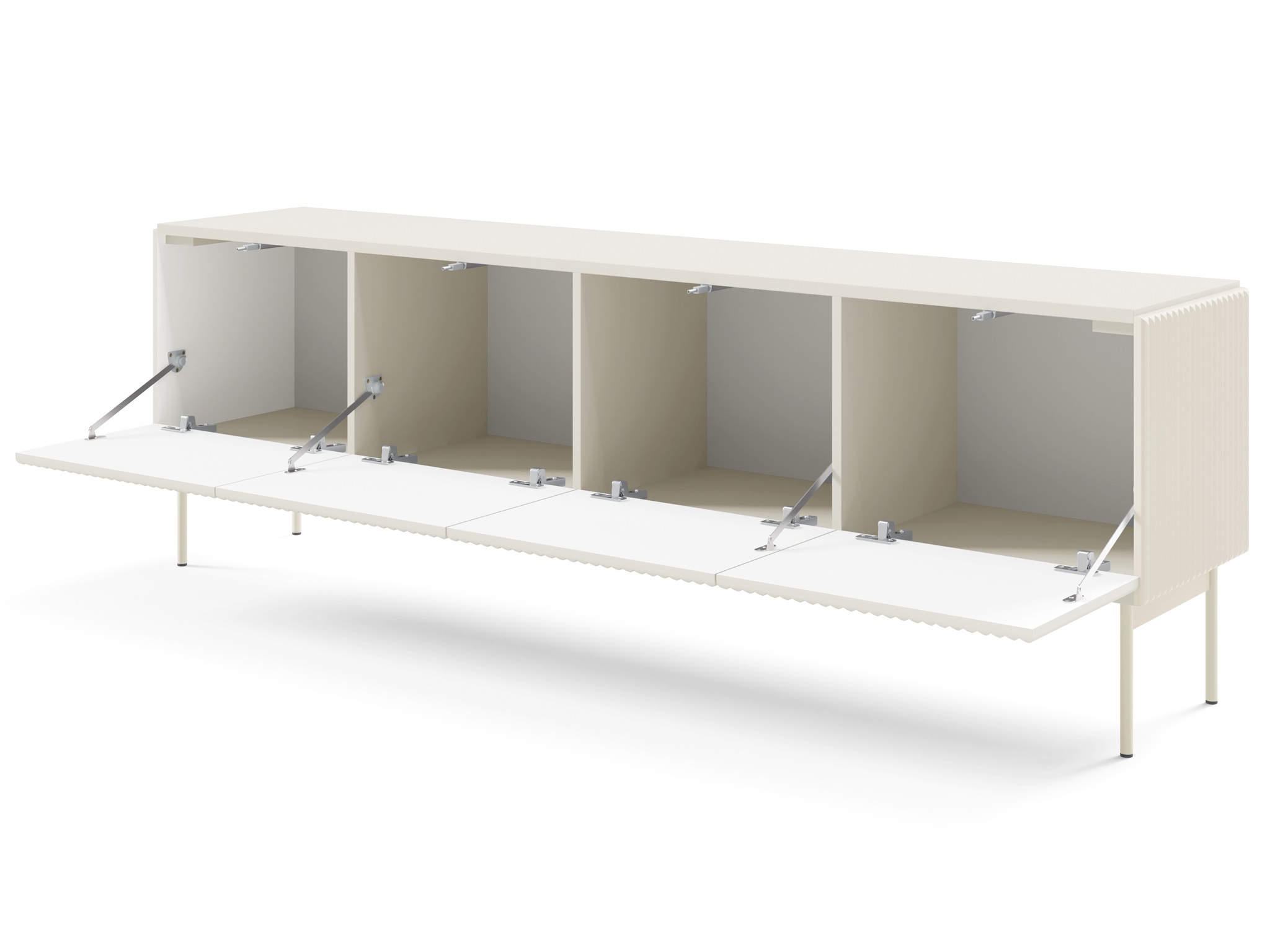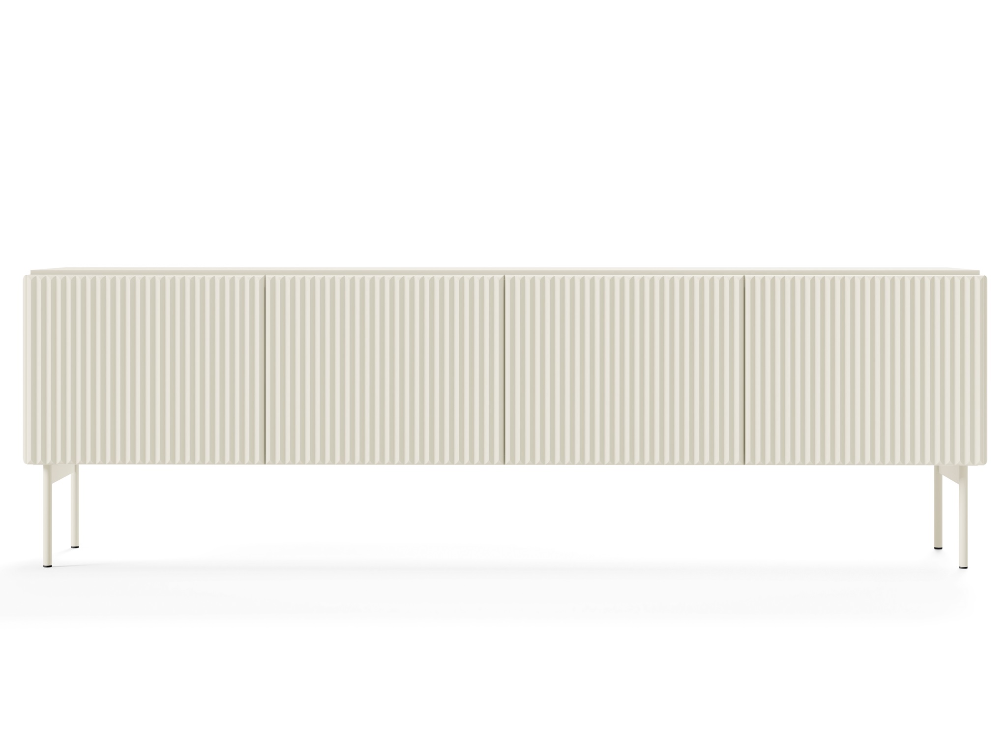 Wyjątkowy design – ryflowane powierzchnie przełamują gładką płytę w kolorze kaszmiru, tworząc luksusowy efekt, który przyciąga wzrok.