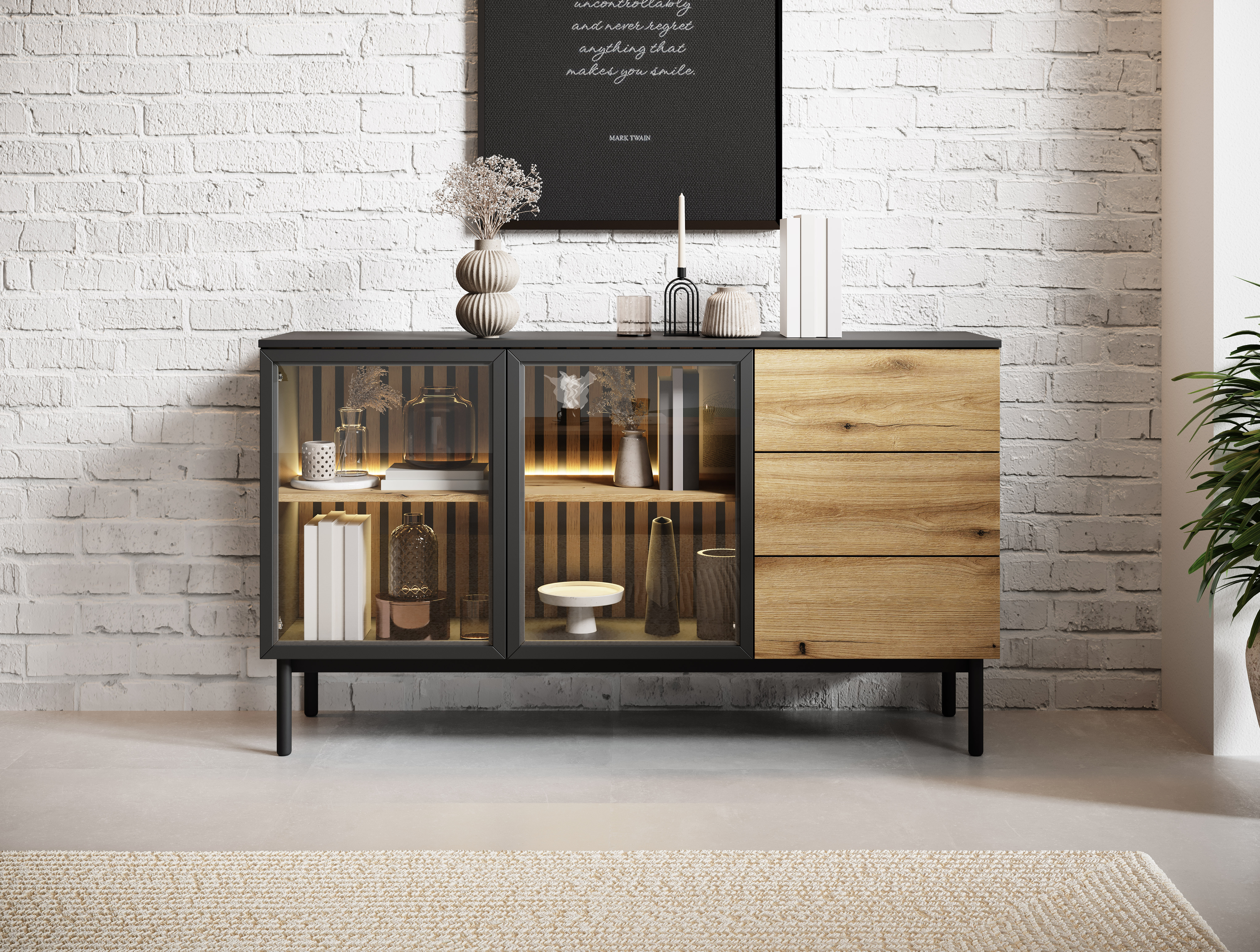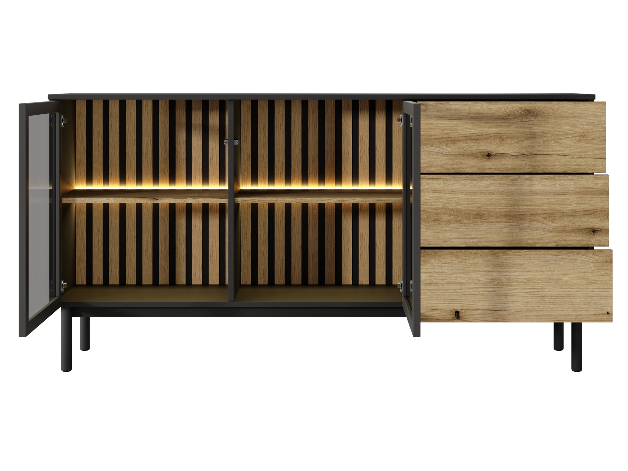Wprowadź do swojego wnętrza harmonię natury i nowoczesnego designu. Kolekcja LAVARO to esencja skandynawskiej prostoty, wyrażona przez naturalne drewno i kontrastujące, matowe czernie. Funkcjonalność spotyka estetykę w postaci eleganckich witryn z podświetleniem LED, minimalistycznych komód i designerskich stolików kawowych. Każdy mebel został stworzony z myślą o tym, by zachwycać – zarówno formą, jak i komfortem użytkowania. Subtelne światło, szlachetne materiały i ponadczasowy styl sprawiają, że LAVARO stanie się sercem Twojego domu.