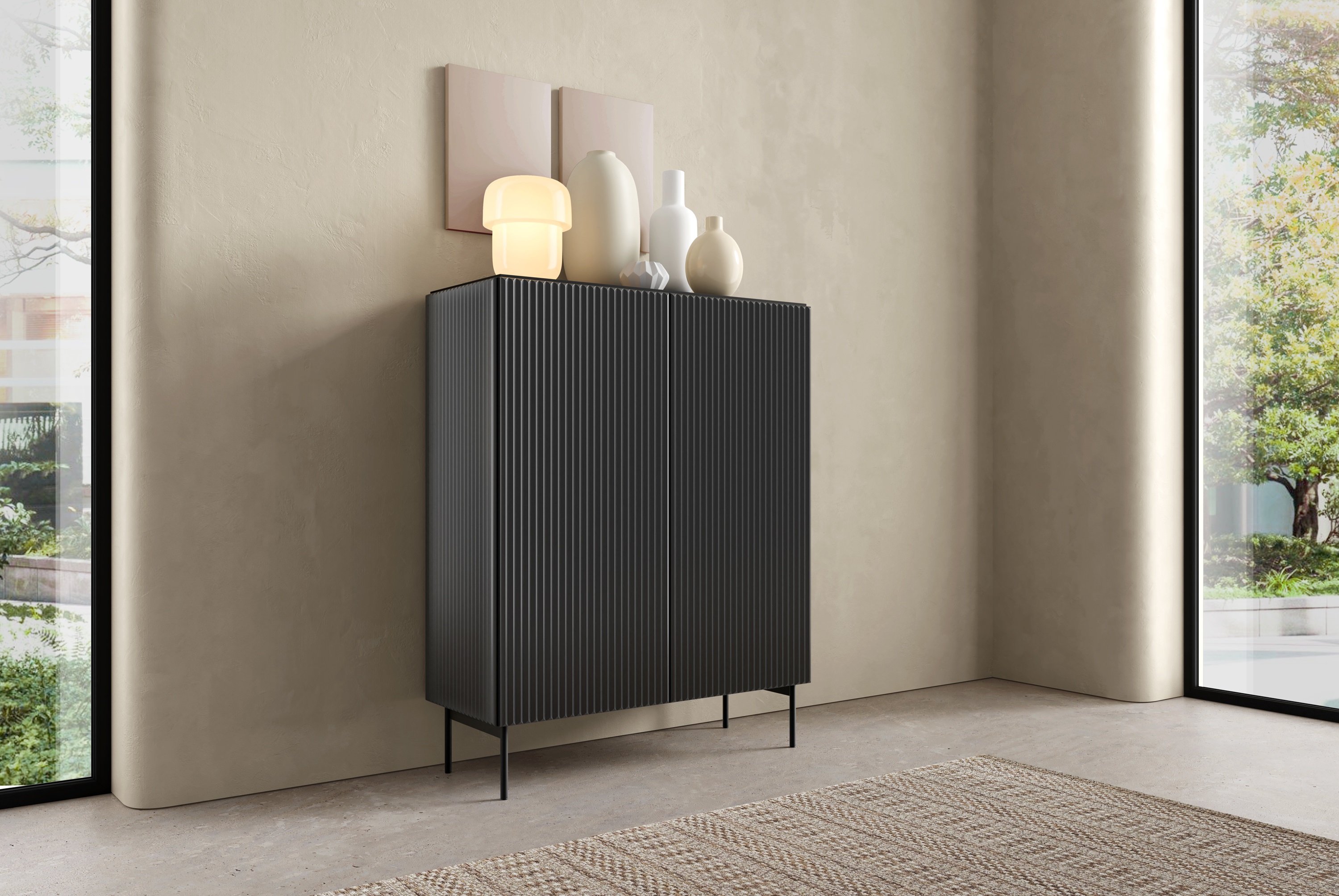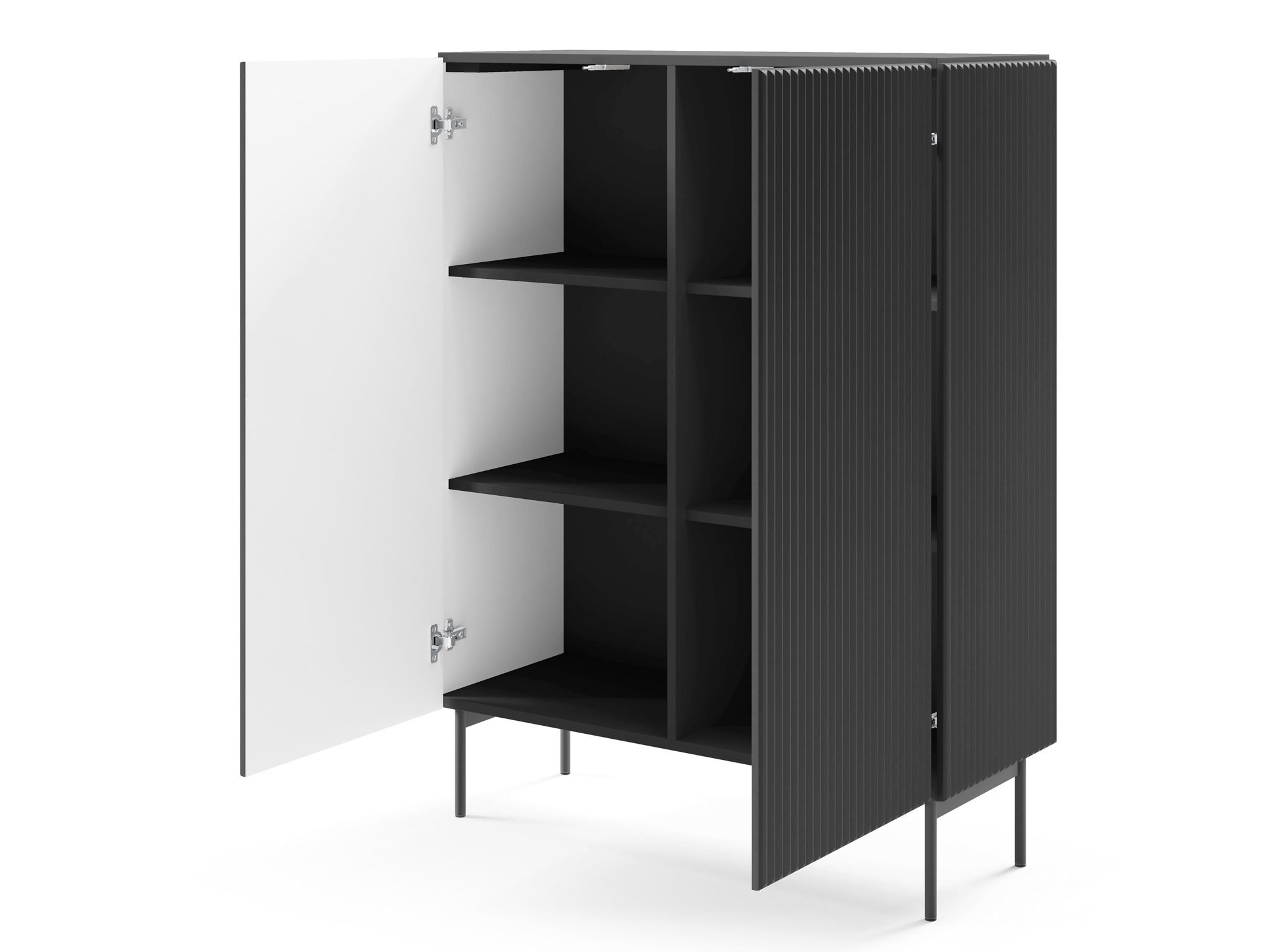 Wyjątkowy design – ryflowane powierzchnie przełamują gładką czerń, tworząc luksusowy efekt, który przyciąga wzrok.