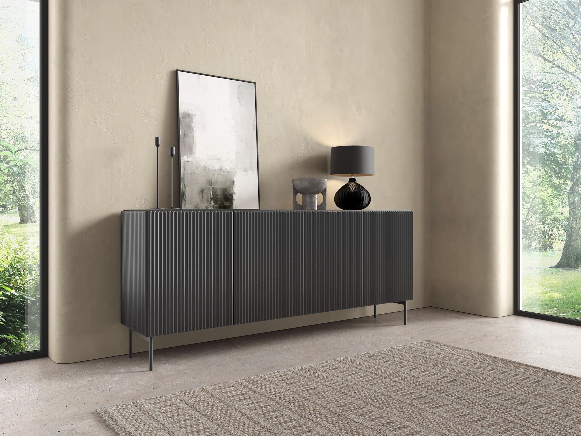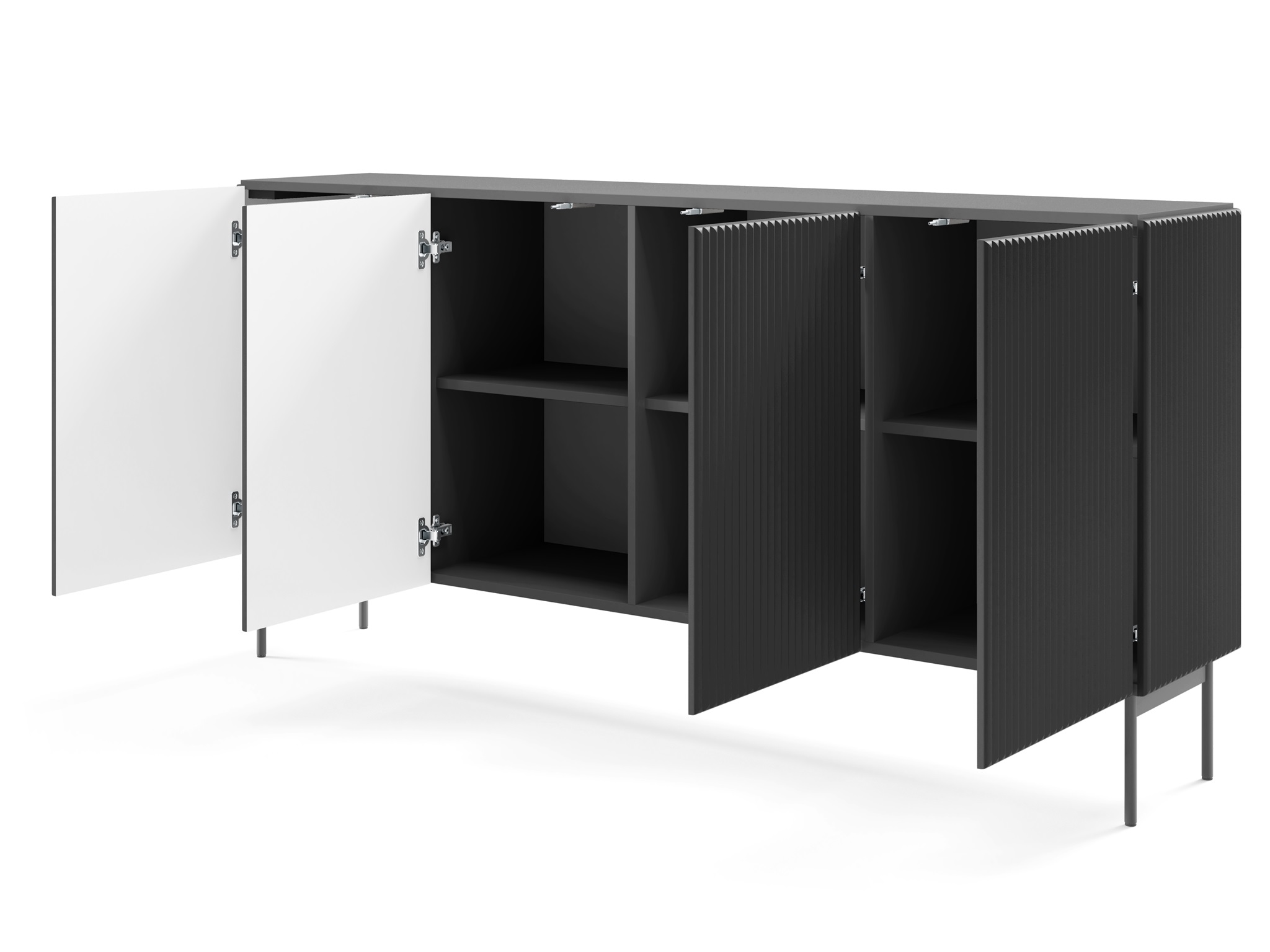 Wyjątkowy design – ryflowane powierzchnie przełamują gładką czerń, tworząc luksusowy efekt, który przyciąga wzrok.