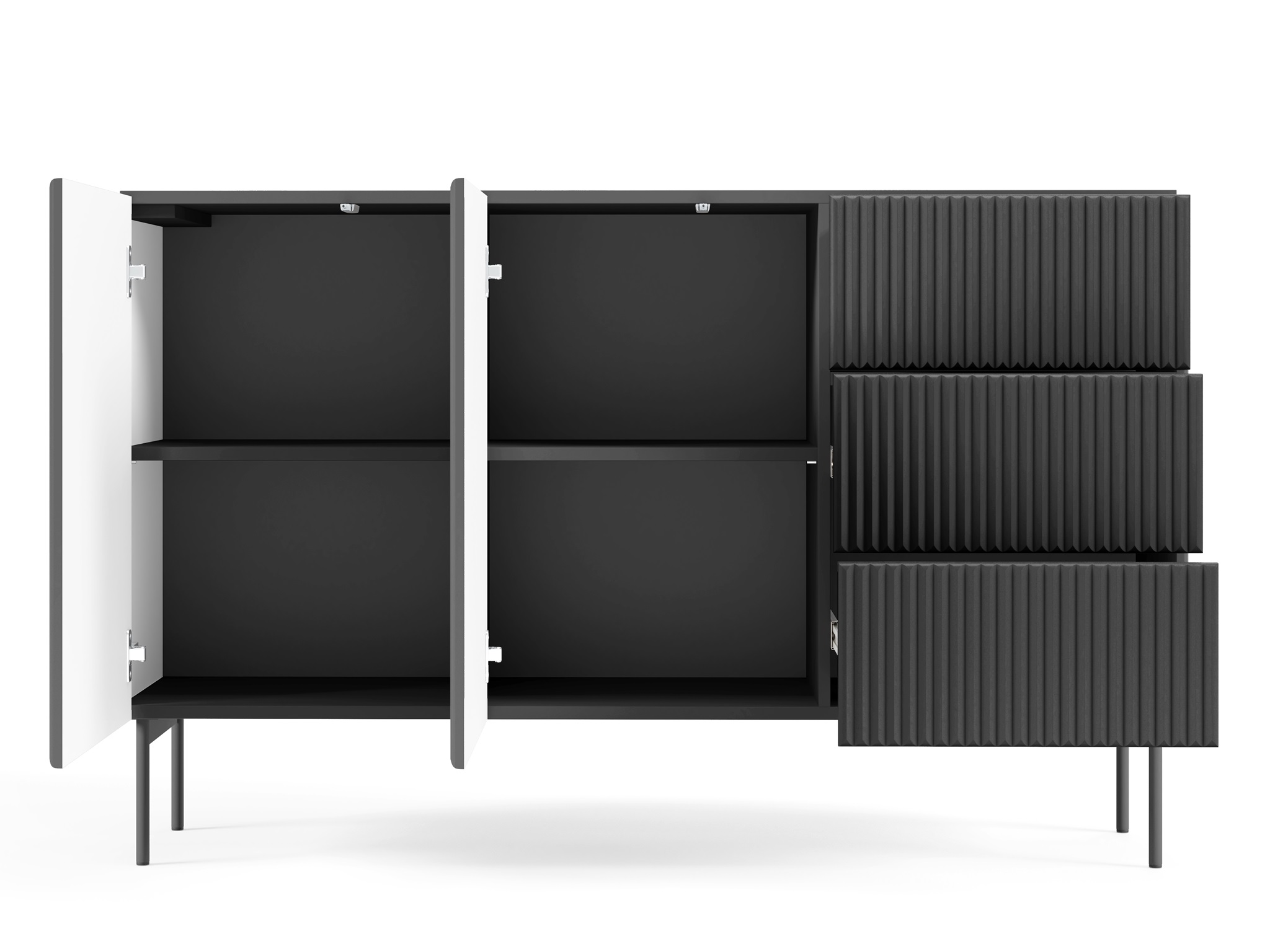 Wyjątkowy design – ryflowane powierzchnie przełamują gładką czerń, tworząc luksusowy efekt, który przyciąga wzrok.