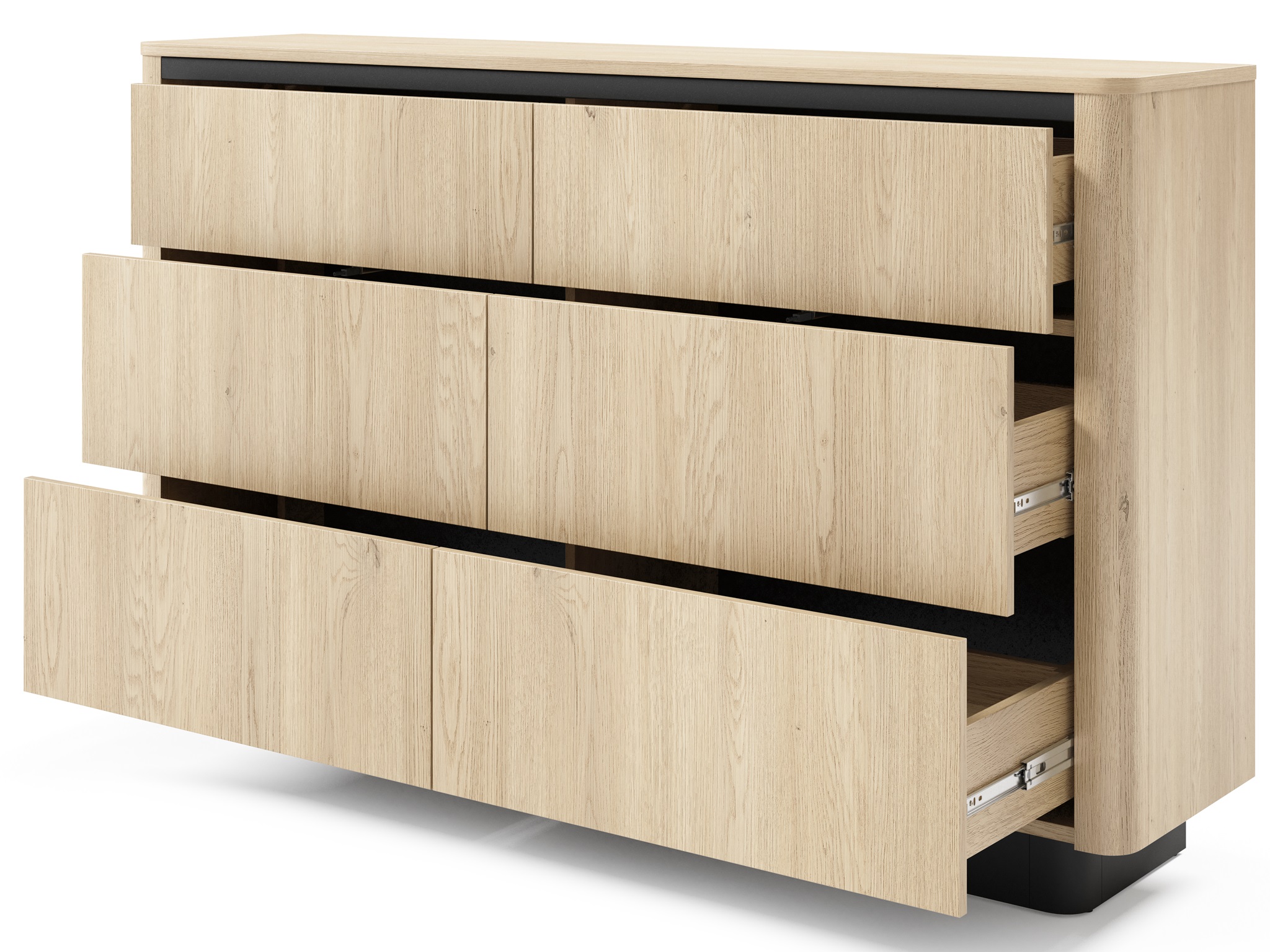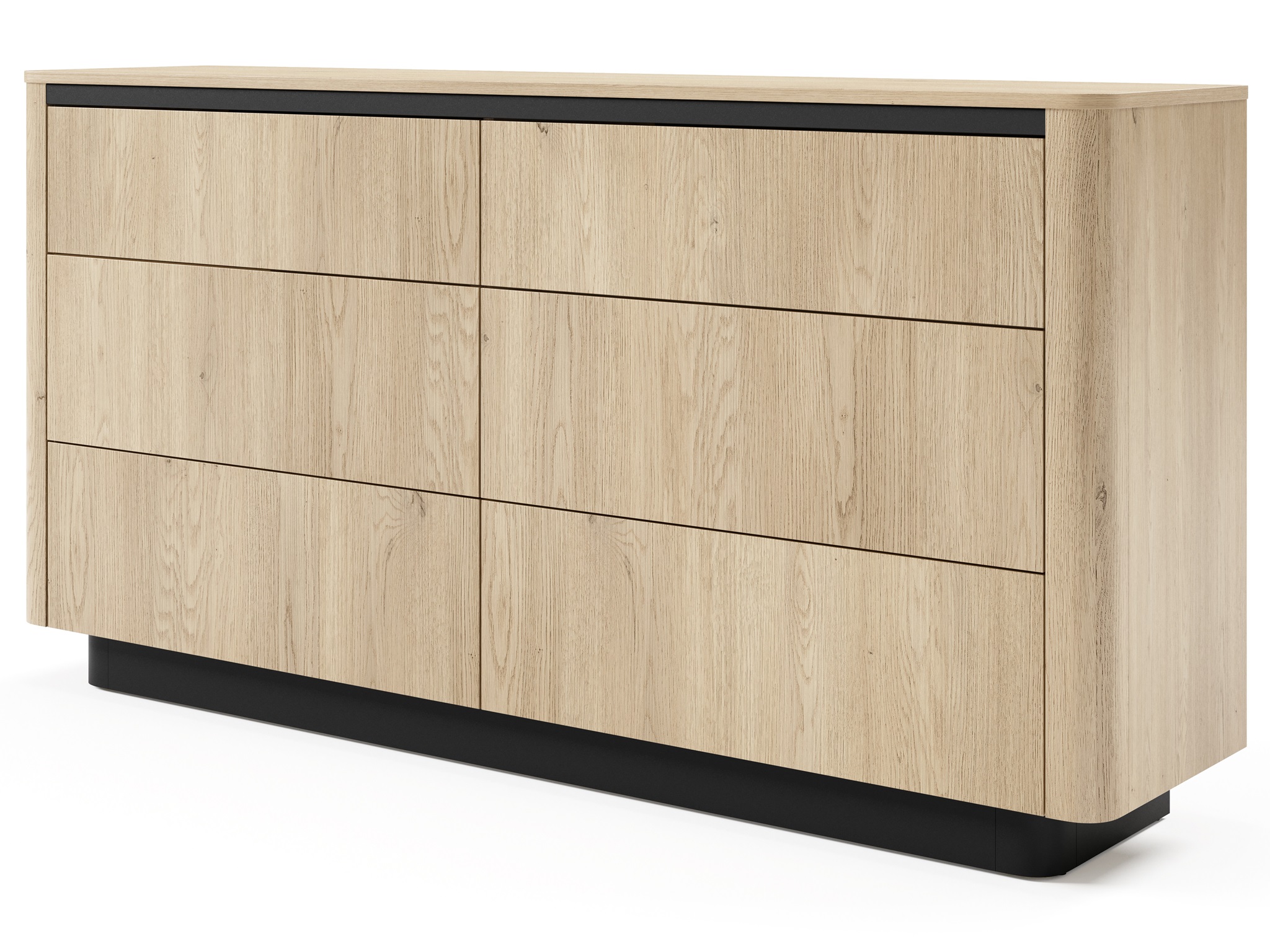 Kolekcja TIAGO to połączenie naturalnej elegancji i nowoczesnego minimalizmu. Jasny odcień dębu Cremona zestawiony z czarnymi akcentami nadaje wnętrzom wyjątkowego charakteru – przytulnego, a zarazem stylowego. Subtelnie zaokrąglone boki, ozdobne listwy oraz czarne cokoły podkreślają dopracowane wzornictwo, które zachwyci miłośników estetyki w stylu japandi.