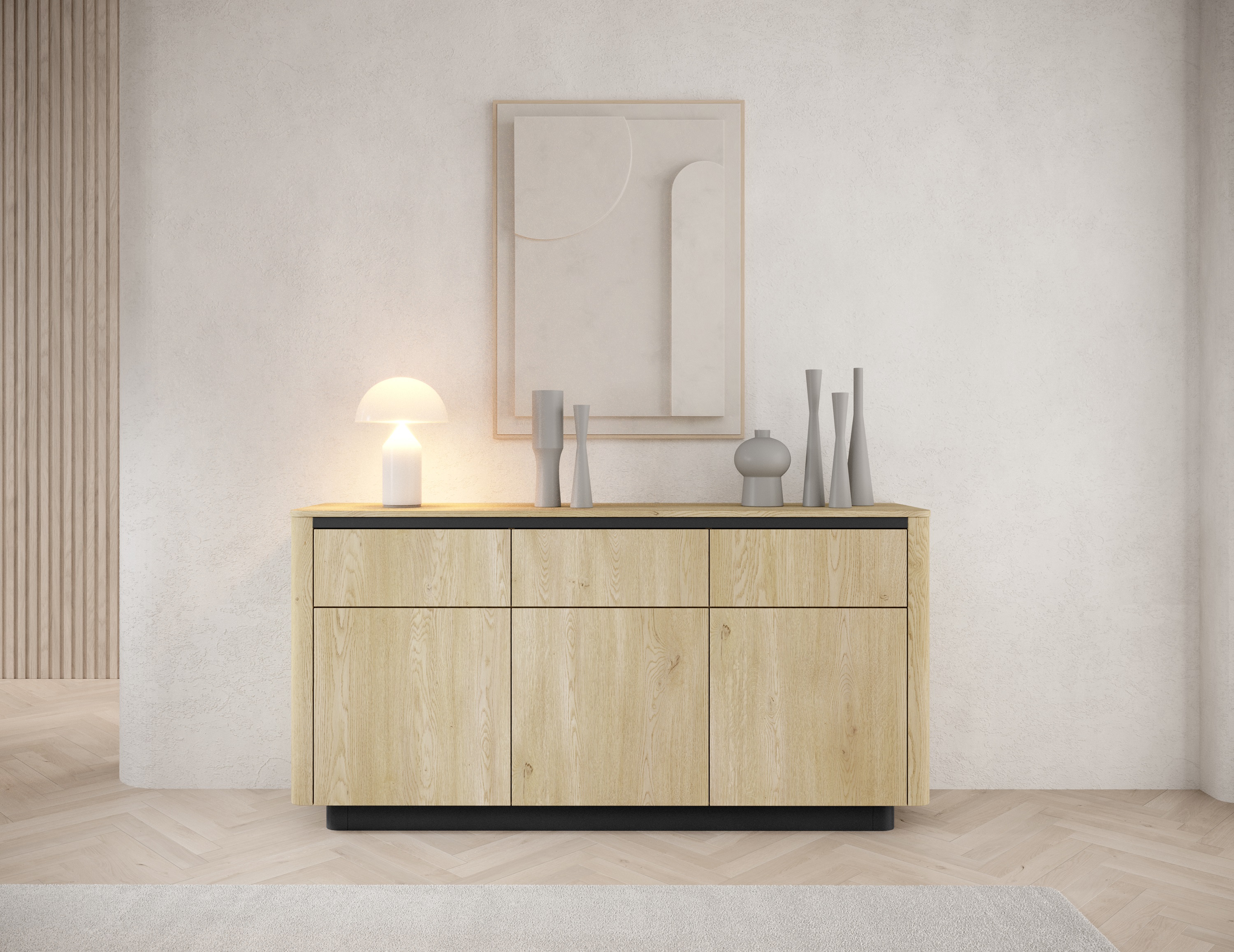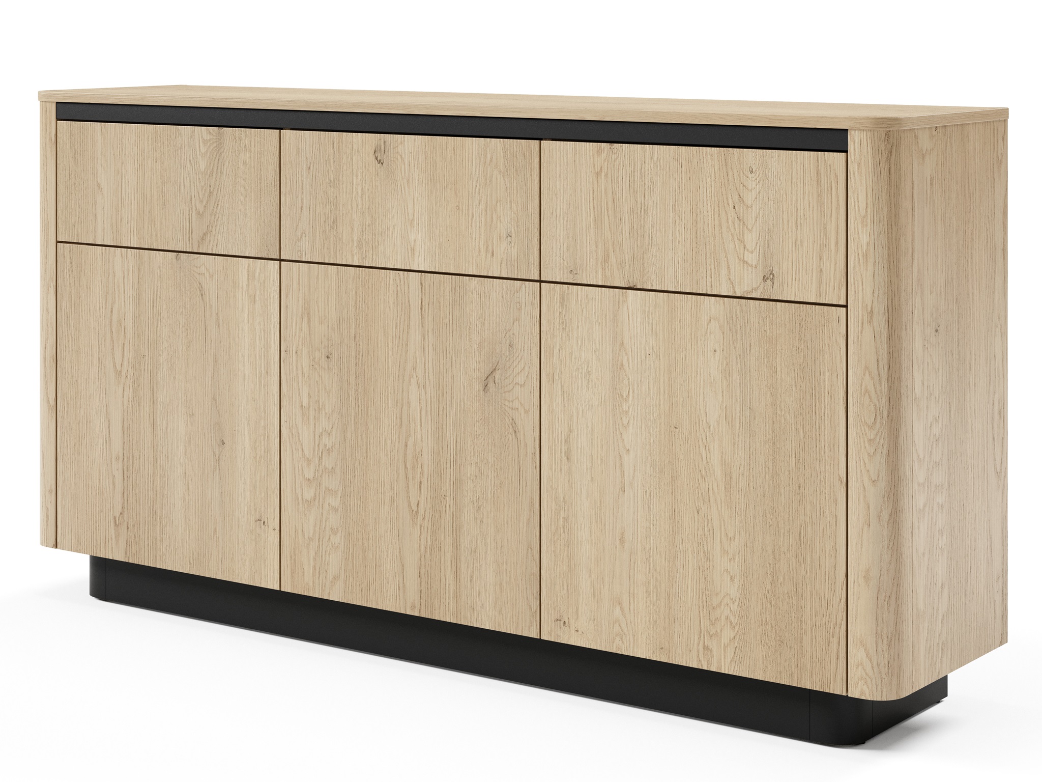 Kolekcja TIAGO to połączenie naturalnej elegancji i nowoczesnego minimalizmu. Jasny odcień dębu Cremona zestawiony z czarnymi akcentami nadaje wnętrzom wyjątkowego charakteru – przytulnego, a zarazem stylowego. Subtelnie zaokrąglone boki, ozdobne listwy oraz czarne cokoły podkreślają dopracowane wzornictwo, które zachwyci miłośników estetyki w stylu japandi.