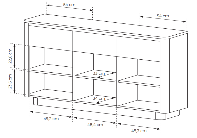 Meble TIAGO wyróżniają się nie tylko designem, ale również praktycznością. Przestronne komody, witryny i szafki RTV pozwalają uporządkować przestrzeń, a system push-to-open zapewnia wygodne i bezgłośne otwieranie bez potrzeby stosowania uchwytów. Solidne wykonanie z płyty laminowanej, obrzeża ABS i ciche prowadnice gwarantują trwałość oraz komfort użytkowania na lata. Dzięki szerokiemu wyborowi brył kolekcja TIAGO sprawdzi się zarówno w nowoczesnych salonach, jak i jadalniach, tworząc spójne i eleganckie aranżacje.