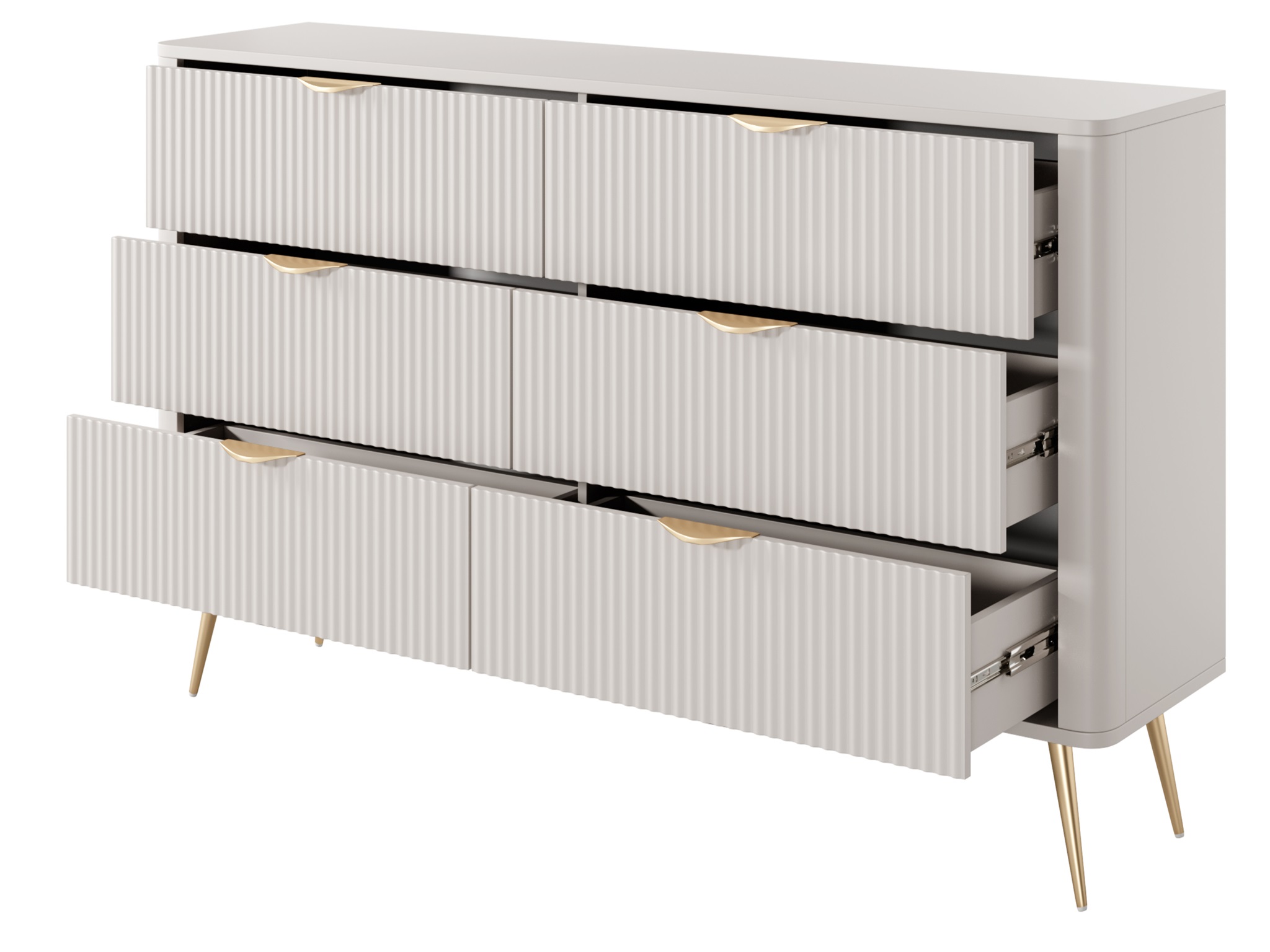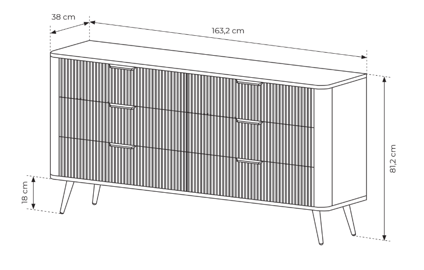 Dekoracyjne ryflowanie na frontach mebli to znak rozpoznawczy kolekcji. Wprowadza do wnętrza subtelną dynamikę, grę światła i faktur. To detal, który wyróżnia kolekcję na tle gładkich, prostych brył i sprawia, że meble Lanett są nie tylko funkcjonalne, ale i dekoracyjne.