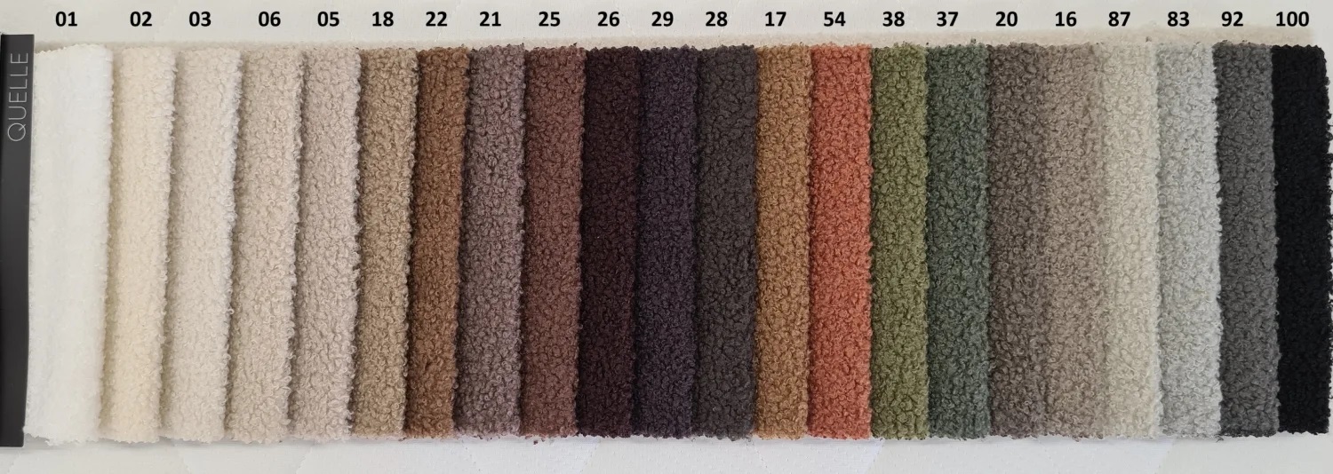 Tkanina obiciowa QUELLE wyróżnia się unikalną strukturą boucle, często nazywaną "barankiem". Jej miękka, przytulna tekstura dodaje wnętrzom wyjątkowego charakteru i elegancji, świetnie komponując się zarówno z aranżacjami klasycznymi, jak i nowoczesnymi.