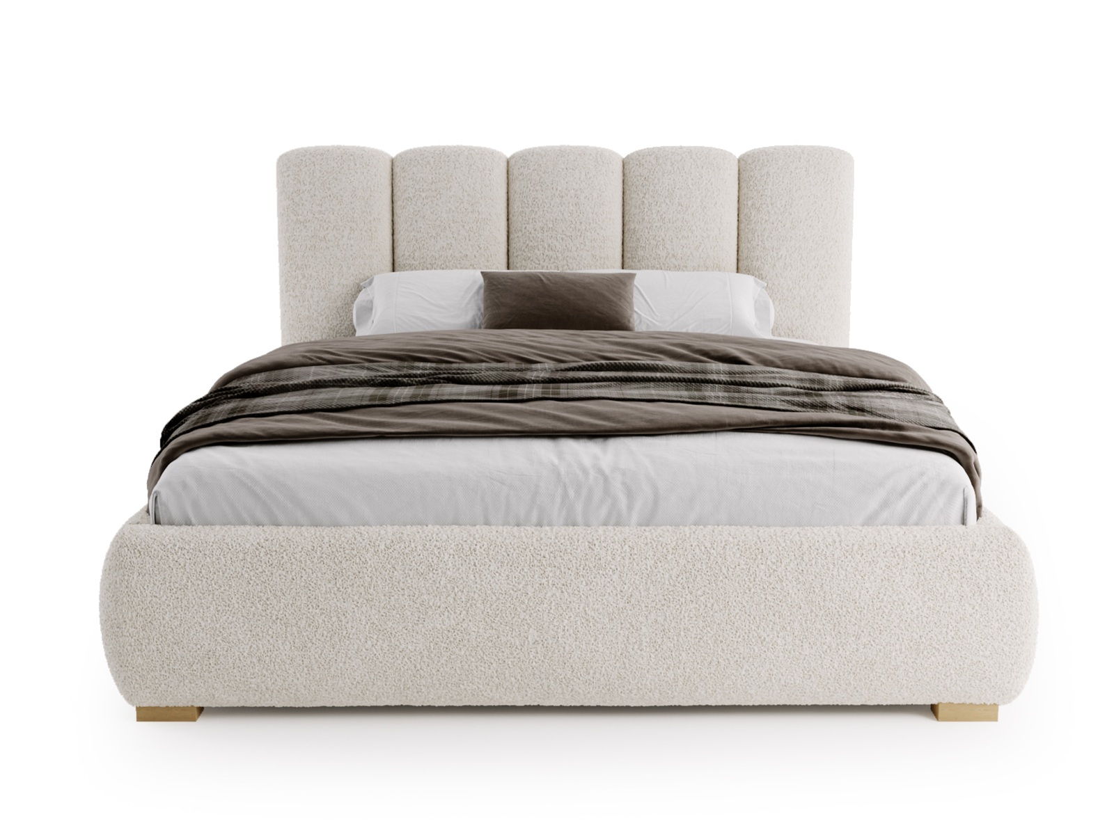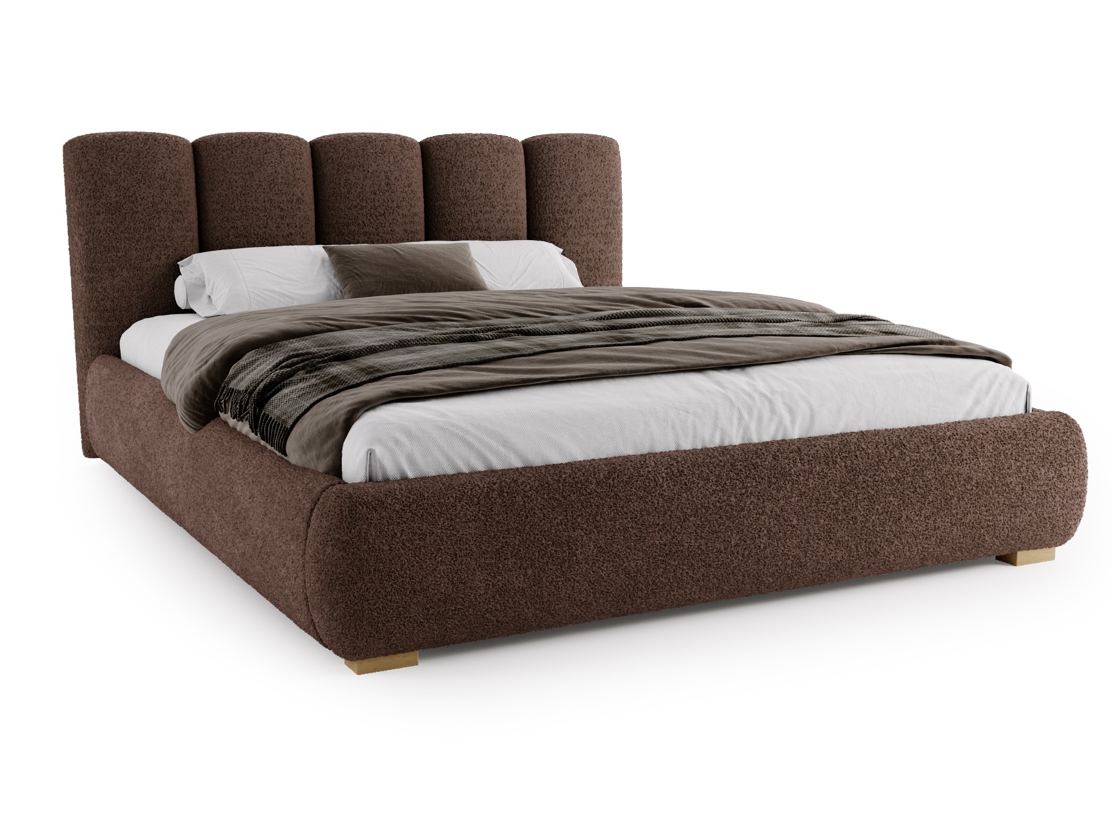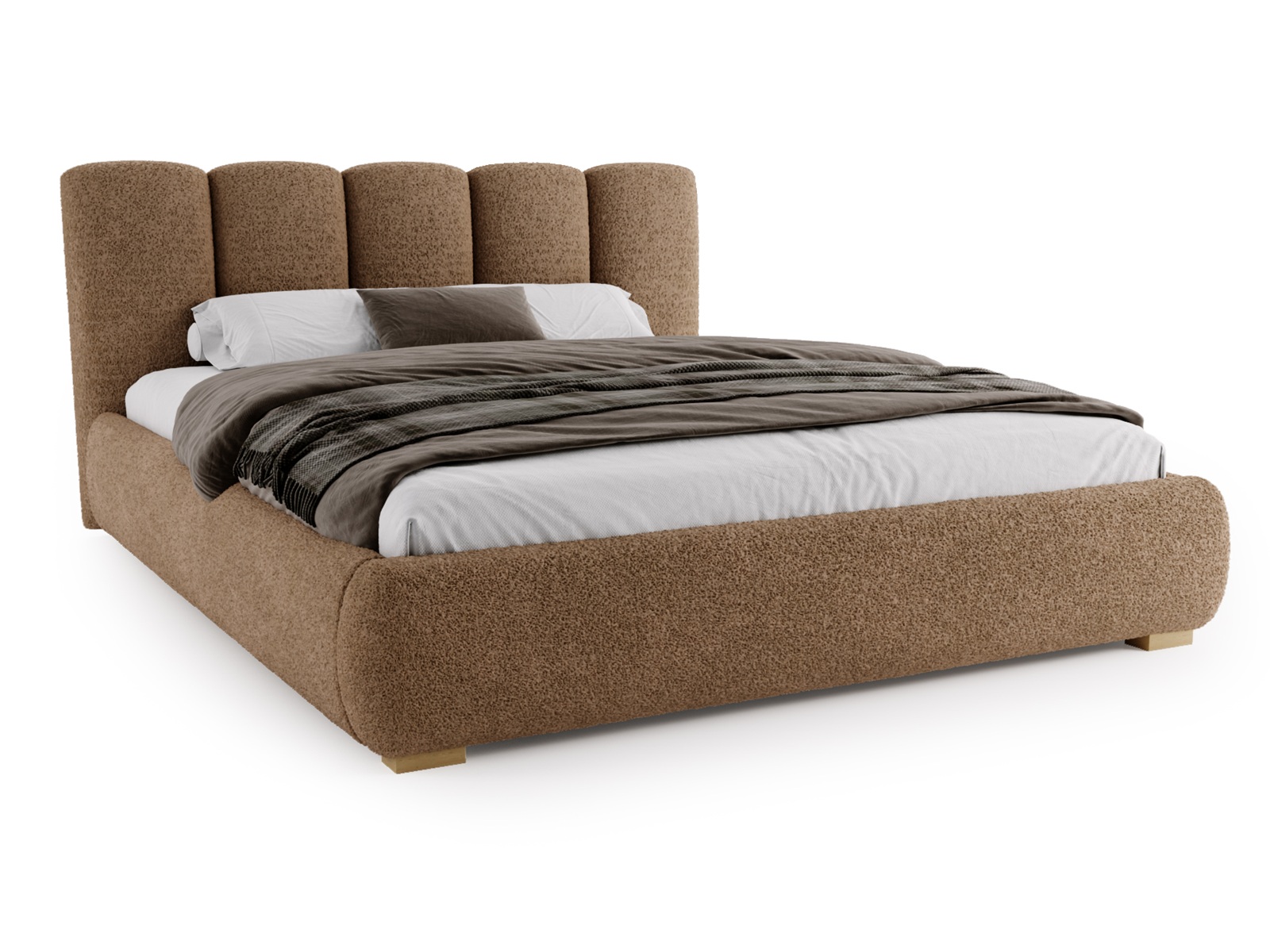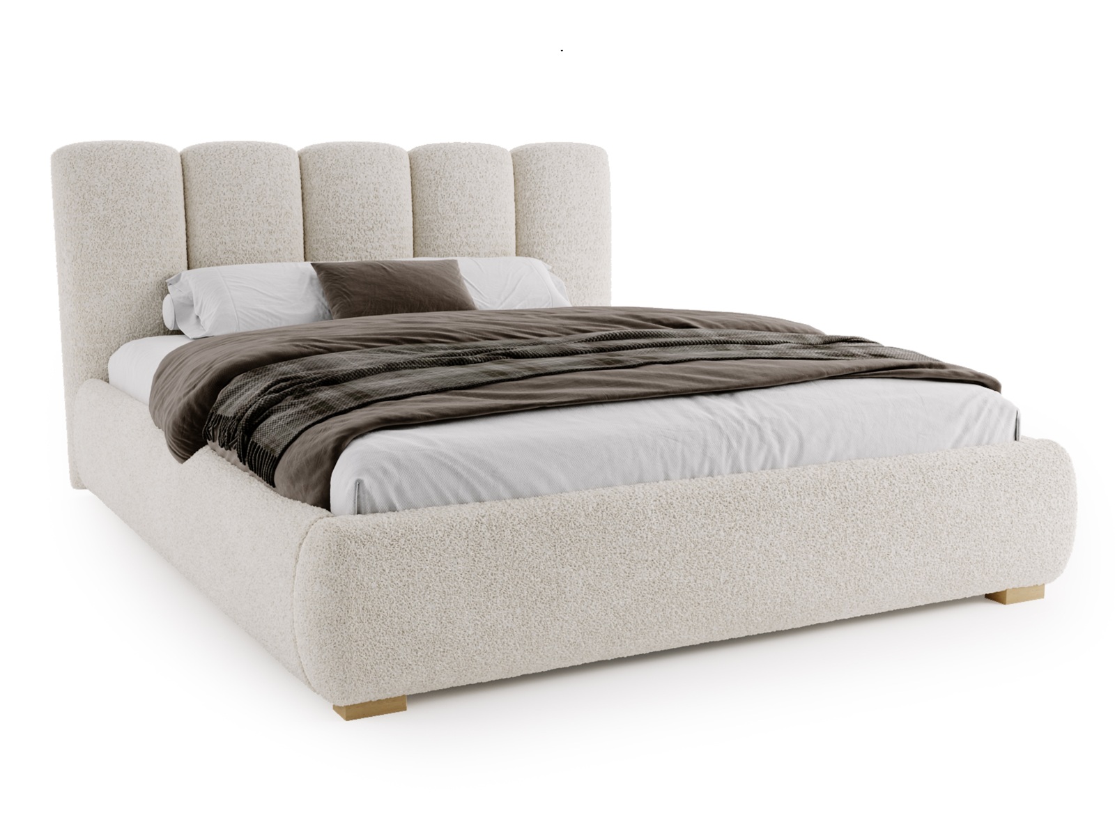 Jego miękka, zaokrąglona bryła oraz elegancki zagłówek z pionowymi przeszyciami tworzą harmonijną, przytulną przestrzeń sprzyjającą relaksowi. Inspiracja stylem soft minimalism i japandi sprawia, że łóżko doskonale wpisuje się w aktualne trendy wnętrzarskie.