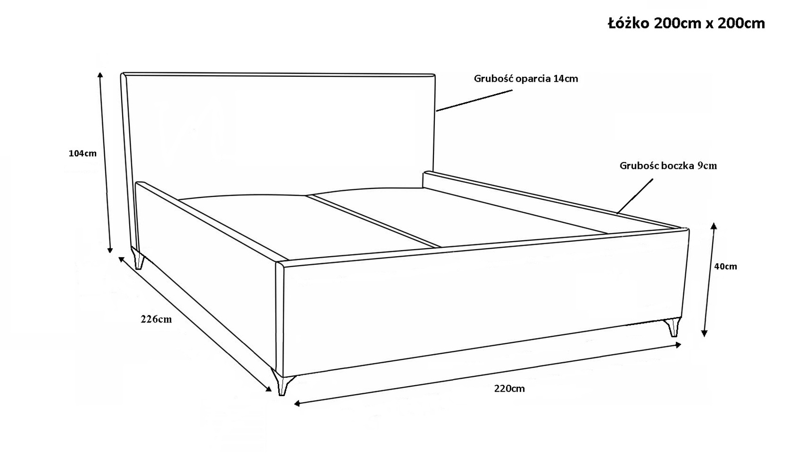 Powierzchnia spania: 200 x 200 cm