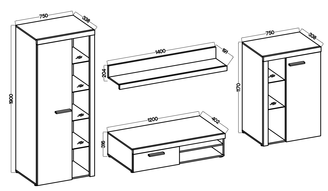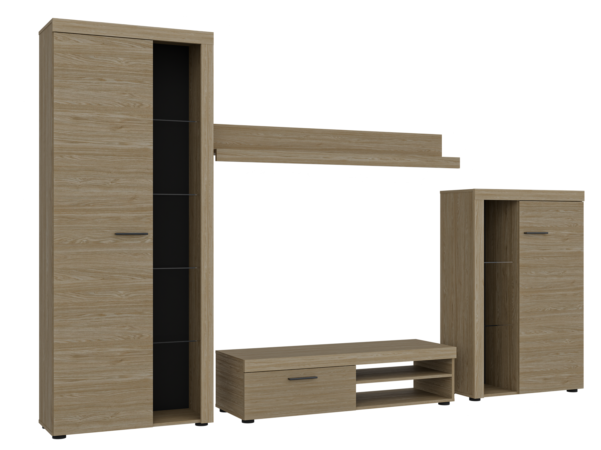 Meblościanka RAMON w kolorze dąb olejowany to propozycja dla osób poszukujących stylowych, a jednocześnie praktycznych mebli do salonu. Projekt łączy nowoczesne wzornictwo z wysoką jakością wykonania, charakterystyczną dla polskiej produkcji meblarskiej.