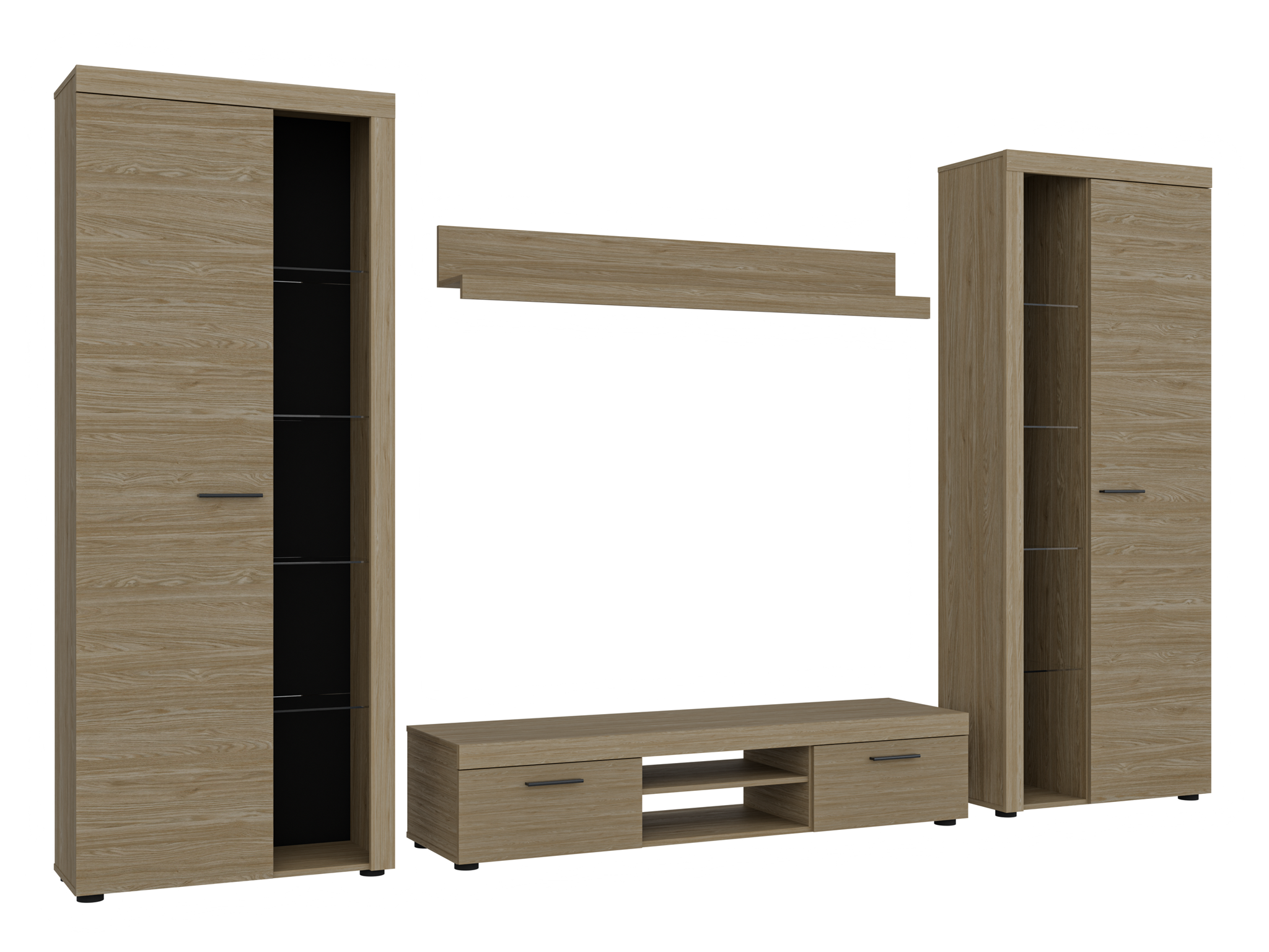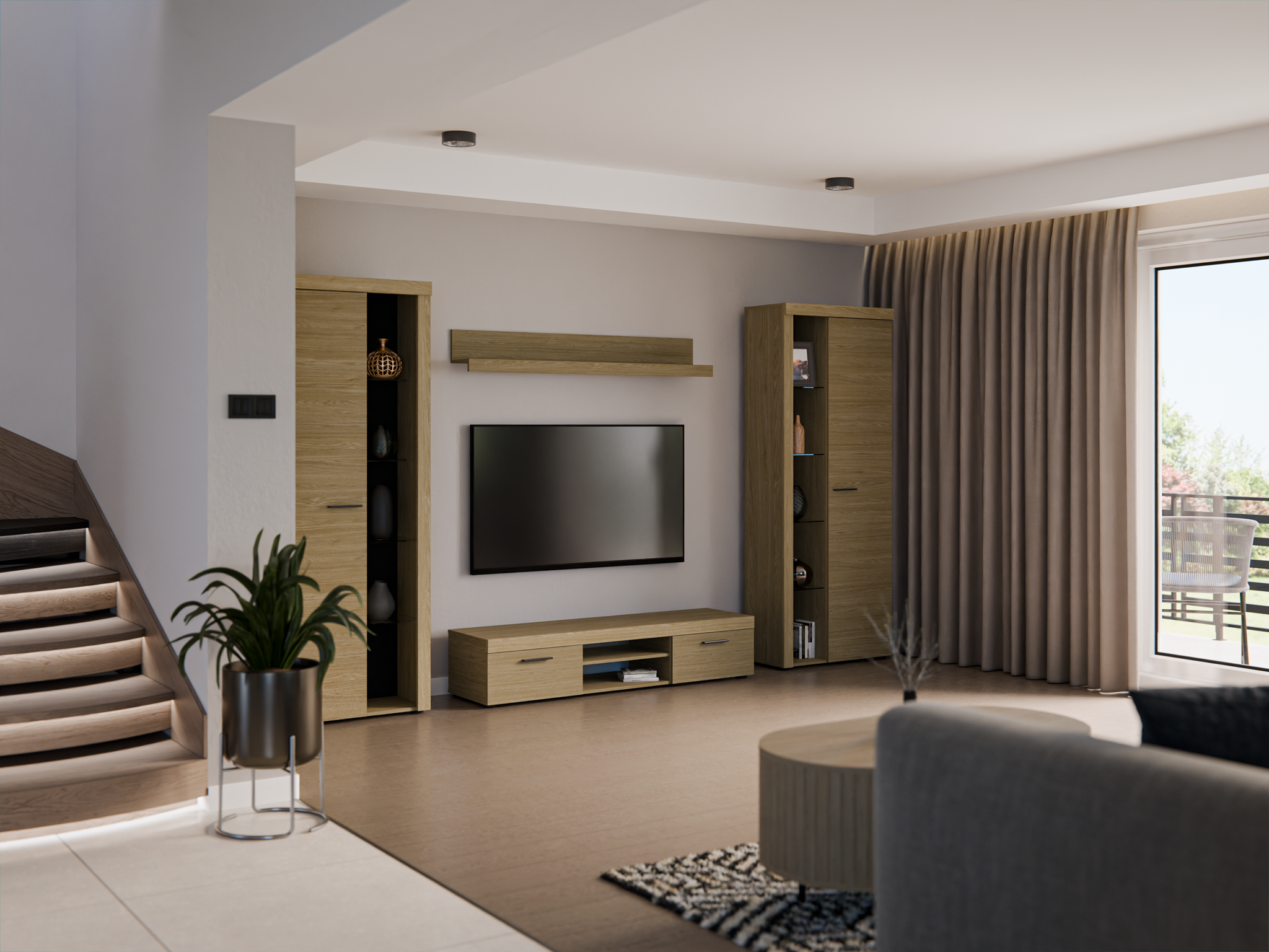 Meblościanka RAMON w kolorze dąb olejowany to propozycja dla osób poszukujących stylowych, a jednocześnie praktycznych mebli do salonu. Projekt łączy nowoczesne wzornictwo z wysoką jakością wykonania, charakterystyczną dla polskiej produkcji meblarskiej.