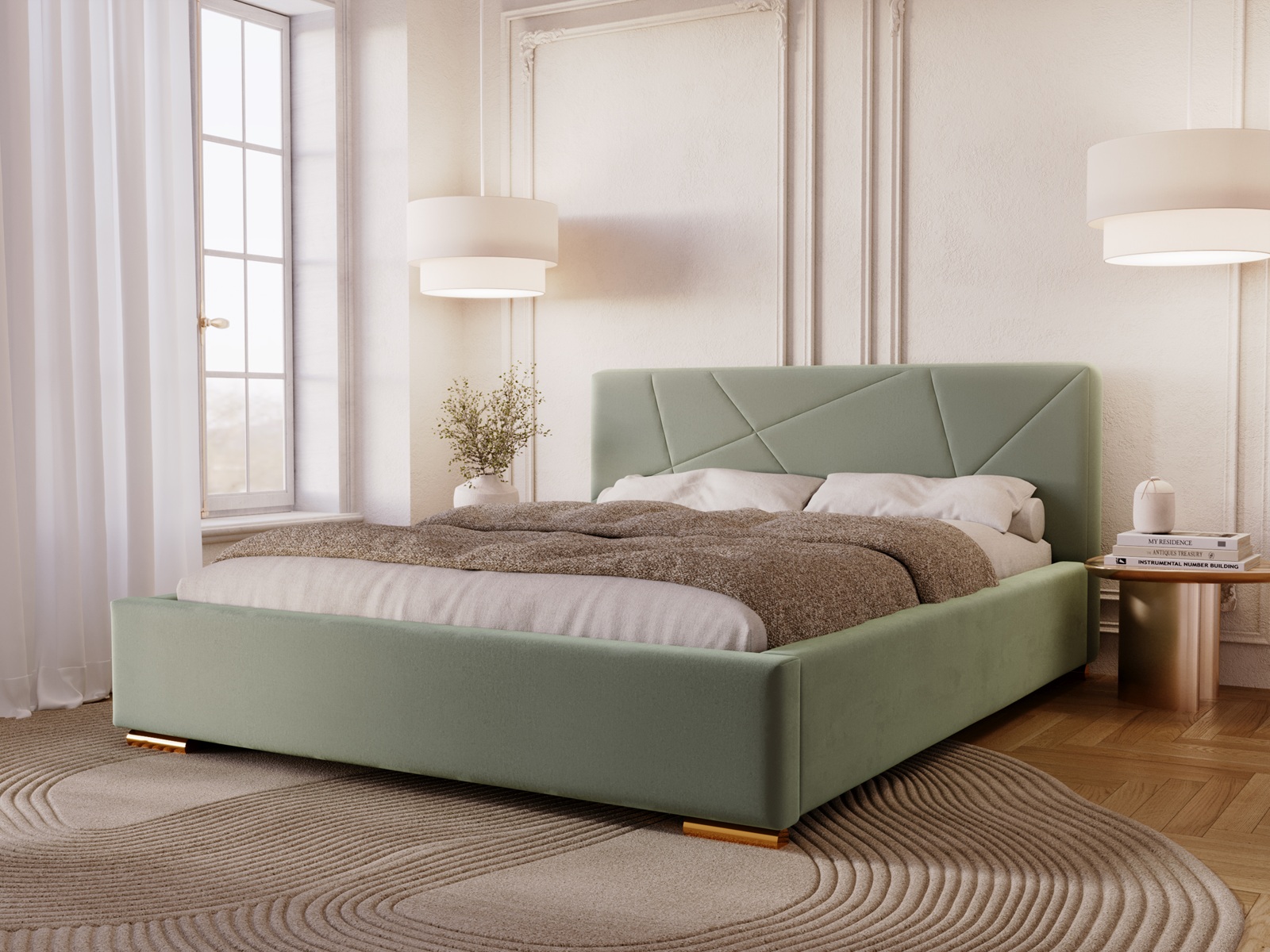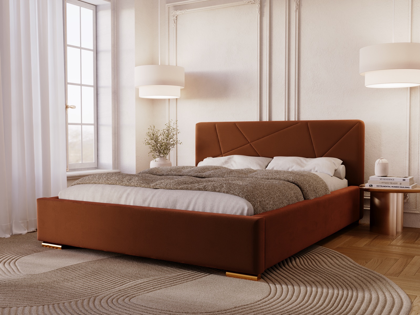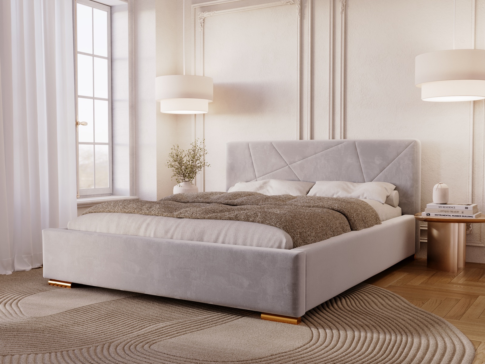 Łóżko tapicerowane DIORA to wyjątkowy mebel stworzony z myślą o osobach, które oczekują czegoś więcej niż standardowego wyposażenia sypialni. To harmonijne połączenie eleganckiego wzornictwa, najwyższej jakości materiałów oraz praktycznych rozwiązań, które podnoszą komfort codziennego użytkowania. Centralnym punktem łóżka jest efektowne wezgłowie z nowoczesnymi, geometrycznymi przeszyciami. Dzięki zastosowaniu zaawansowanej technologii szycia na piance, wzór jest idealnie równy, trwały i niezwykle estetyczny. To detal, który nadaje wnętrzu prestiżowego charakteru i sprawia, że łóżko staje się główną ozdobą sypialni.