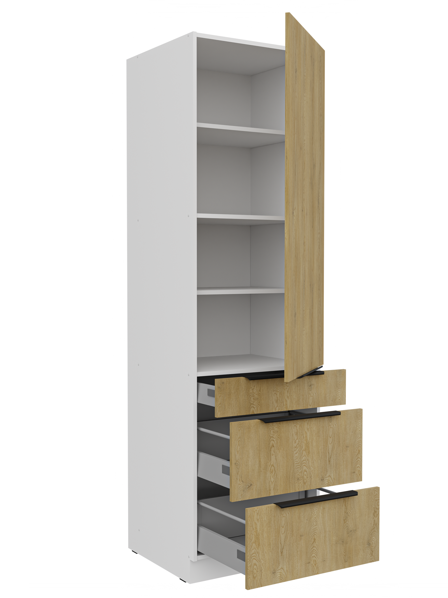 Szafa z nadstawką jednodrzwiowa 60 cm szuflady TRINO garderoba dąb sonoma