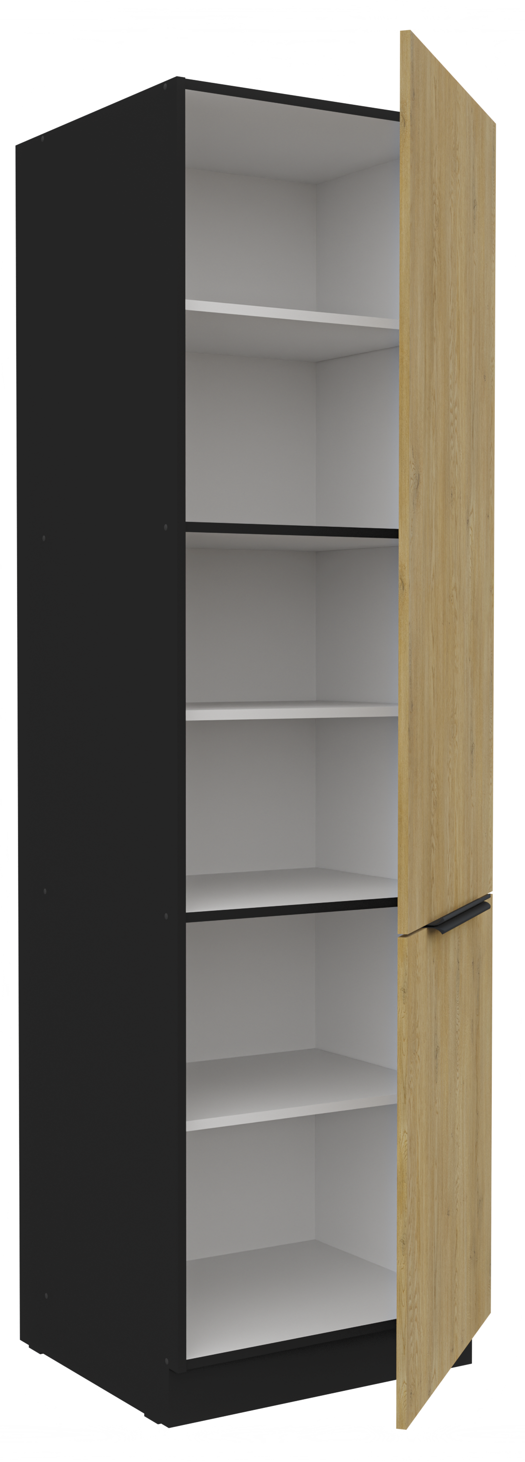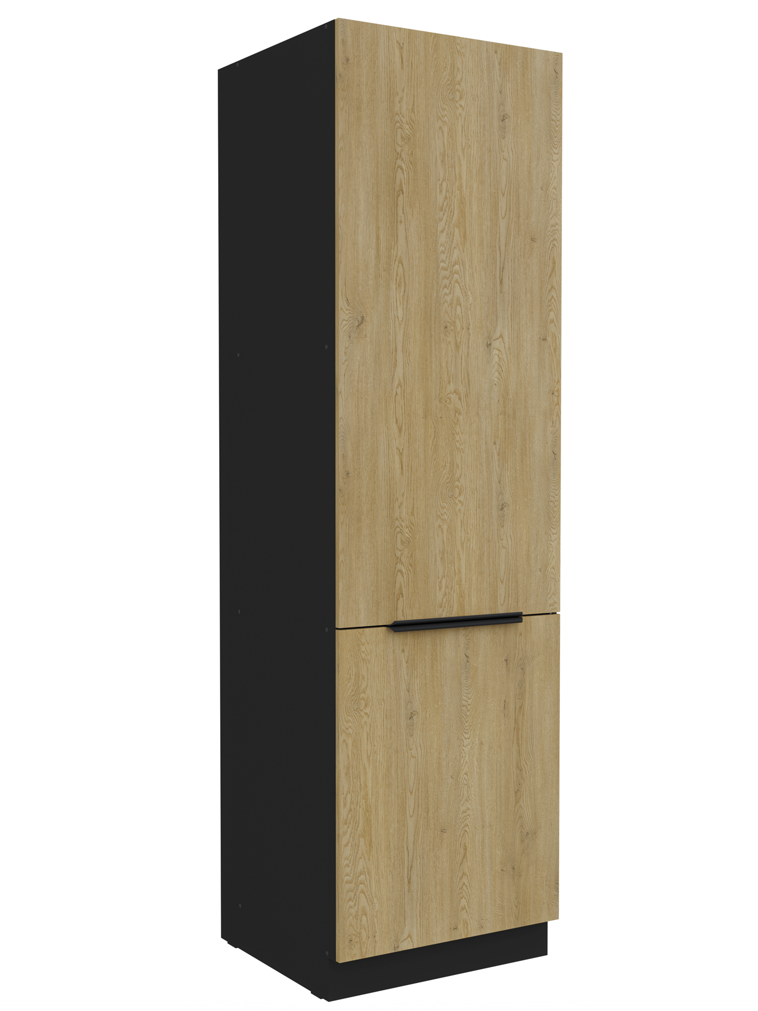 Kolekcja kuchenna CREMA to połączenie minimalistycznego designu z ciepłem naturalnego drewna. Fronty w delikatnym, drewnopodobnym wykończeniu harmonizują z matowymi, czarnymi akcentami, tworząc elegancką i ponadczasową przestrzeń. Geometryczne linie i proste uchwyty podkreślają nowoczesny charakter kolekcji, a przemyślane rozmieszczenie szafek zapewnia maksymalną funkcjonalność nawet w kompaktowej zabudowie. CREMA to idealny wybór dla osób, które cenią praktyczne rozwiązania, subtelną estetykę i ponadczasowy styl. Kolekcja posiada czarne uchwyty aluminiowe, które dodają elegancji i stylu. Dzięki systemowi cichego domykania frontów i szuflad, korzystanie z mebli jest wygodne oraz ergonomiczne. Meble kuchenne CREMA to doskonały wybór dla osób poszukujących nowoczesnego i funkcjonalnego wystroju kuchni. Szafki jednodrzwiowe są uniwersalne, o stronie otwierania można zdecydować przy montażu. Miejsca na uchwyty naznaczone nieprzelotowo od wewnątrz. Meble do samodzielnego montażu, według przejrzystej instrukcji.