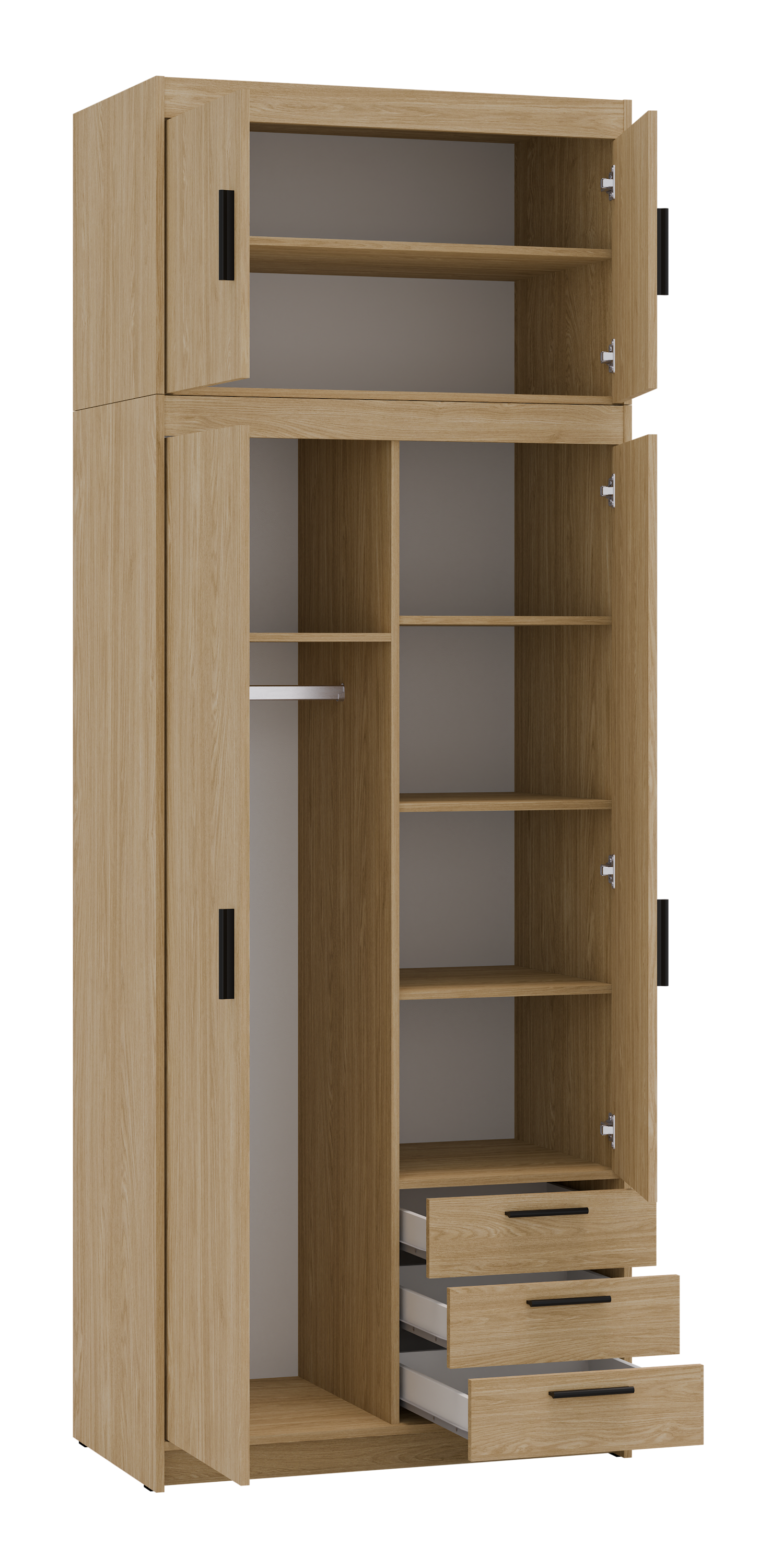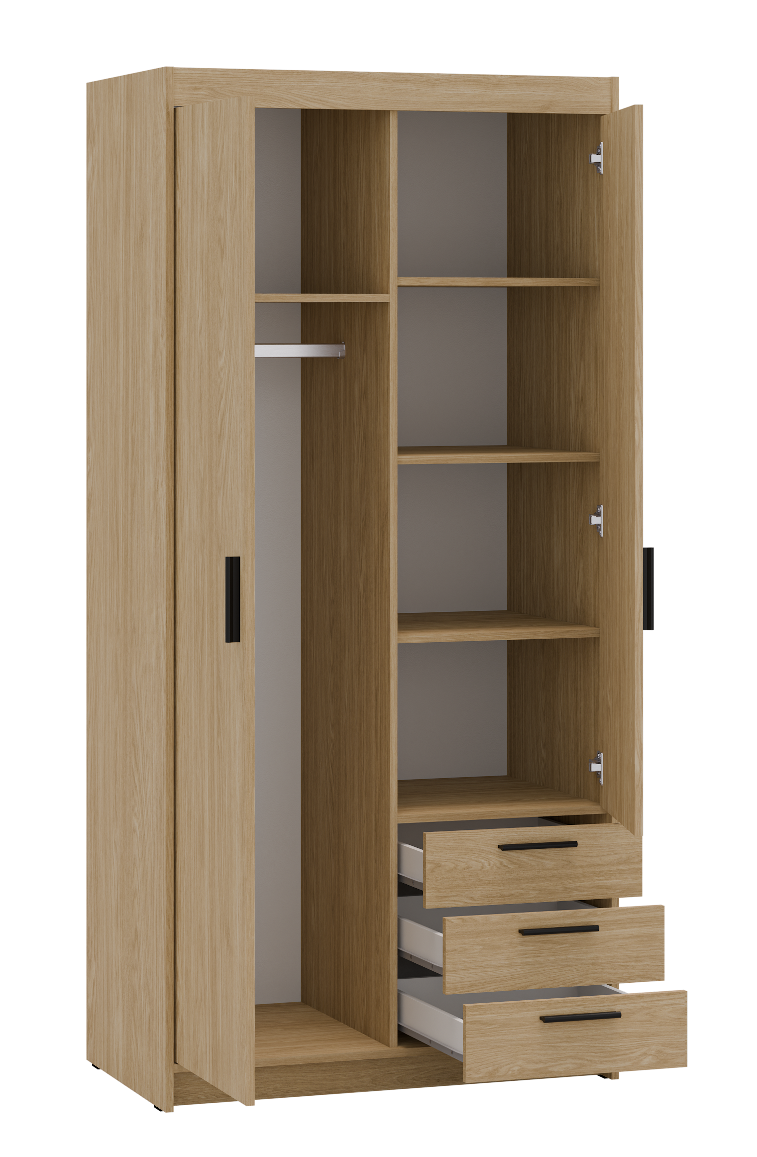 Szukasz eleganckiej i funkcjonalnej szafy do swojej sypialni, przedpokoju, salonu czy pokoju dziecka? Mebel z serii TRINO będzie doskonałym wyborem! Szafy dostępne w różnych szerokościach, kolorach oraz konfiguracjach wnętrza. Dodatkowo do każdej szafy można dokupić nadstawkę co sprawia że zyskujesz dodatkową przestrzeń do przechowywania rzeczy. Garderoba Trino to nie tylko praktyczne rozwiązanie, ale także stylowy element wystroju wnętrza. Nada nowoczesny i elegancki wygląd dzięki trzem modnym kolorom do wyboru: biały, dąb sonoma oraz dąb lefkas. Dostępne już teraz w atrakcyjnej cenie !