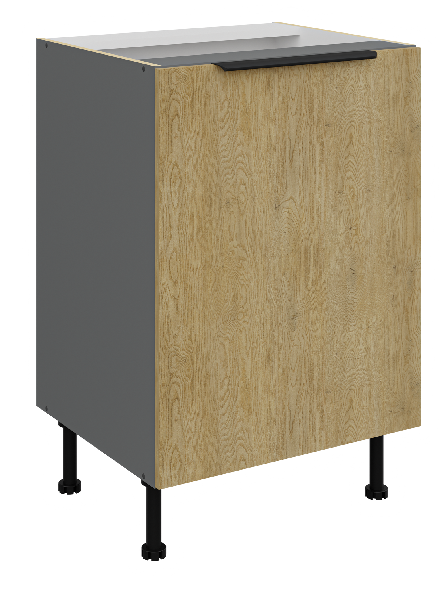 Kolekcja kuchenna CREMA to połączenie minimalistycznego designu z ciepłem naturalnego drewna. Fronty w delikatnym, drewnopodobnym wykończeniu harmonizują z matowymi, antracytowymi akcentami, tworząc elegancką i ponadczasową przestrzeń. Geometryczne linie i proste uchwyty podkreślają nowoczesny charakter kolekcji, a przemyślane rozmieszczenie szafek zapewnia maksymalną funkcjonalność nawet w kompaktowej zabudowie. CREMA to idealny wybór dla osób, które cenią praktyczne rozwiązania, subtelną estetykę i ponadczasowy styl. Kolekcja posiada czarne uchwyty aluminiowe, które dodają elegancji i stylu. Dzięki systemowi cichego domykania frontów i szuflad, korzystanie z mebli jest wygodne oraz ergonomiczne. Dodatkowym atutem są regulowane nogi. Meble kuchenne CREMA to doskonały wybór dla osób poszukujących nowoczesnego i funkcjonalnego wystroju kuchni. Szafki jednodrzwiowe są uniwersalne, o stronie otwierania można zdecydować przy montażu. Miejsca na uchwyty naznaczone nieprzelotowo od wewnątrz. Meble do samodzielnego montażu, według przejrzystej instrukcji.