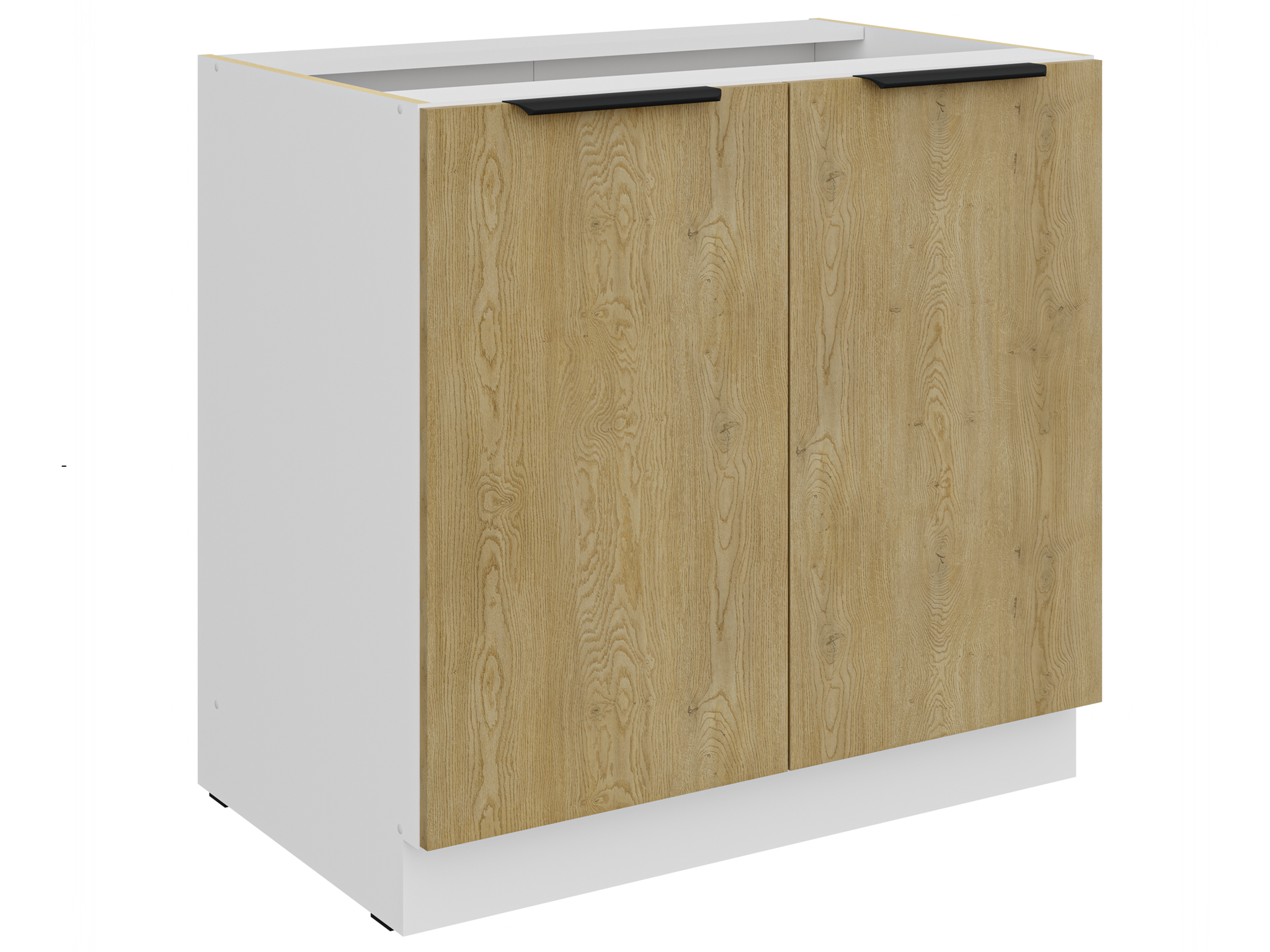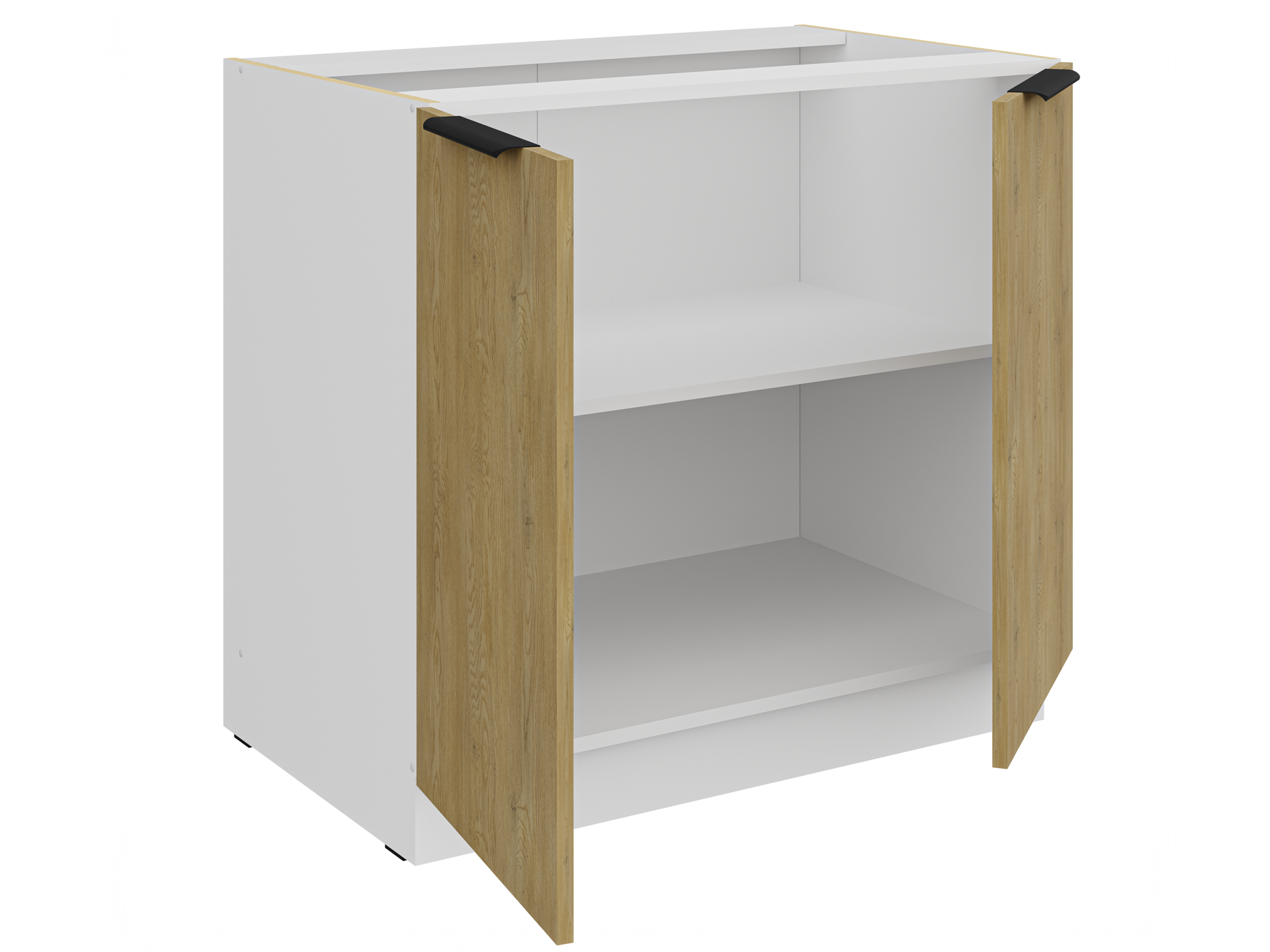 Kolekcja kuchenna CREMA to połączenie minimalistycznego designu z ciepłem naturalnego drewna. Fronty w delikatnym, drewnopodobnym wykończeniu harmonizują z matowymi, białymi akcentami, tworząc elegancką i ponadczasową przestrzeń. Geometryczne linie i proste uchwyty podkreślają nowoczesny charakter kolekcji, a przemyślane rozmieszczenie szafek zapewnia maksymalną funkcjonalność nawet w kompaktowej zabudowie. CREMA to idealny wybór dla osób, które cenią praktyczne rozwiązania, subtelną estetykę i ponadczasowy styl. Kolekcja posiada czarne uchwyty aluminiowe, które dodają elegancji i stylu. Dzięki systemowi cichego domykania frontów i szuflad, korzystanie z mebli jest wygodne oraz ergonomiczne. Meble kuchenne CREMA to doskonały wybór dla osób poszukujących nowoczesnego i funkcjonalnego wystroju kuchni. Szafki jednodrzwiowe są uniwersalne, o stronie otwierania można zdecydować przy montażu. Miejsca na uchwyty naznaczone nieprzelotowo od wewnątrz. Meble do samodzielnego montażu, według przejrzystej instrukcji.