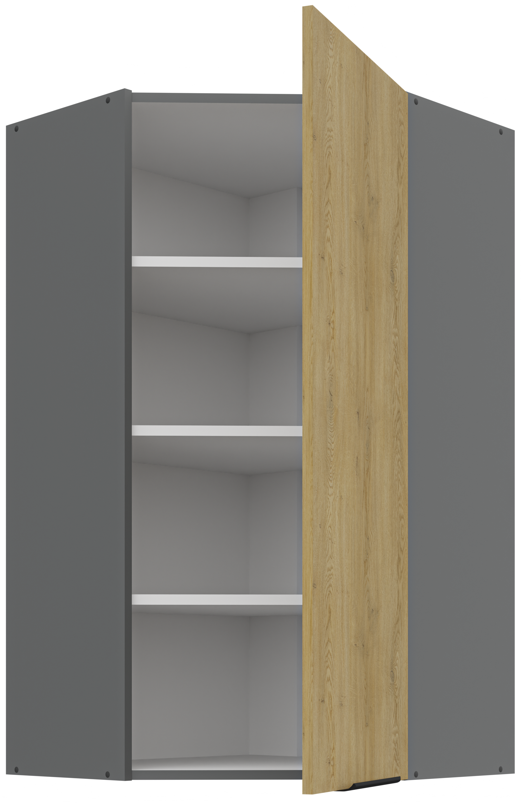 Kolekcja kuchenna CREMA to połączenie minimalistycznego designu z ciepłem naturalnego drewna. Fronty w delikatnym, drewnopodobnym wykończeniu harmonizują z matowymi, antracytowymi akcentami, tworząc elegancką i ponadczasową przestrzeń. Geometryczne linie i proste uchwyty podkreślają nowoczesny charakter kolekcji, a przemyślane rozmieszczenie szafek zapewnia maksymalną funkcjonalność nawet w kompaktowej zabudowie. CREMA to idealny wybór dla osób, które cenią praktyczne rozwiązania, subtelną estetykę i ponadczasowy styl. Kolekcja posiada czarne uchwyty aluminiowe, które dodają elegancji i stylu. Dzięki systemowi cichego domykania frontów i szuflad, korzystanie z mebli jest wygodne oraz ergonomiczne. Dodatkowym atutem są regulowane nogi. Meble kuchenne CREMA to doskonały wybór dla osób poszukujących nowoczesnego i funkcjonalnego wystroju kuchni. Szafki jednodrzwiowe są uniwersalne, o stronie otwierania można zdecydować przy montażu. Miejsca na uchwyty naznaczone nieprzelotowo od wewnątrz. Meble do samodzielnego montażu, według przejrzystej instrukcji.