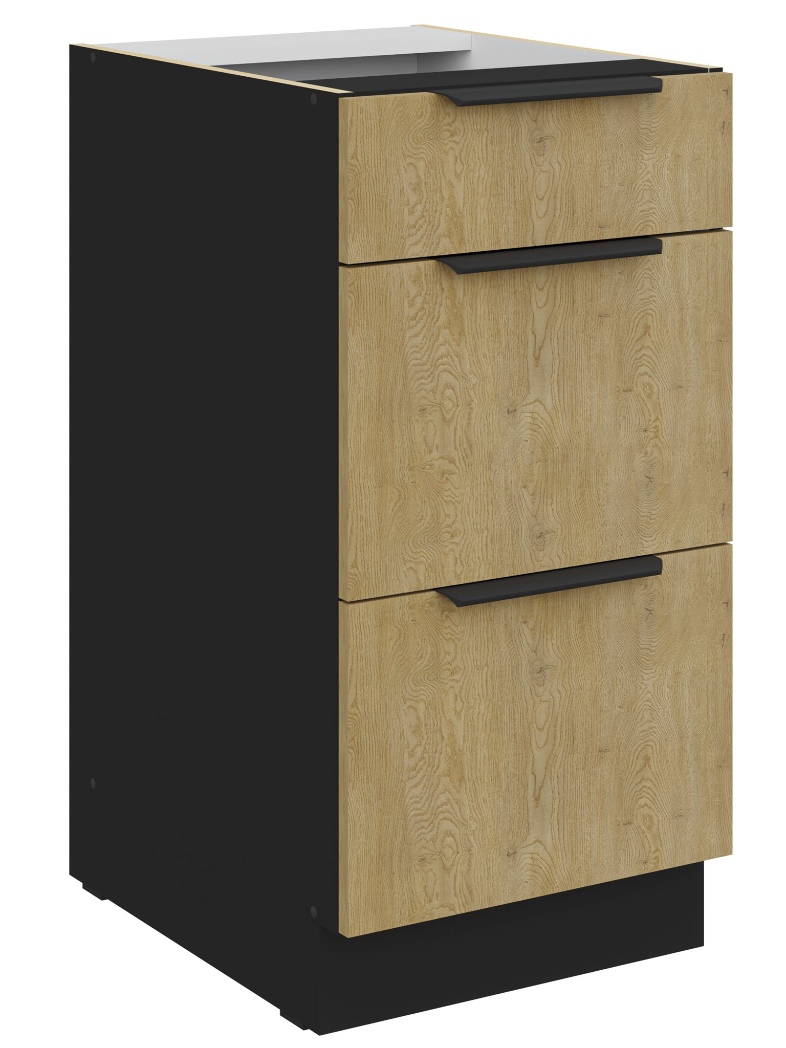 Kolekcja kuchenna CREMA to połączenie minimalistycznego designu z ciepłem naturalnego drewna. Fronty w delikatnym, drewnopodobnym wykończeniu harmonizują z matowymi, czarnymi akcentami, tworząc elegancką i ponadczasową przestrzeń. Geometryczne linie i proste uchwyty podkreślają nowoczesny charakter kolekcji, a przemyślane rozmieszczenie szafek zapewnia maksymalną funkcjonalność nawet w kompaktowej zabudowie. CREMA to idealny wybór dla osób, które cenią praktyczne rozwiązania, subtelną estetykę i ponadczasowy styl. Kolekcja posiada czarne uchwyty aluminiowe, które dodają elegancji i stylu. Dzięki systemowi cichego domykania frontów i szuflad, korzystanie z mebli jest wygodne oraz ergonomiczne. Meble kuchenne CREMA to doskonały wybór dla osób poszukujących nowoczesnego i funkcjonalnego wystroju kuchni. Szafki jednodrzwiowe są uniwersalne, o stronie otwierania można zdecydować przy montażu. Miejsca na uchwyty naznaczone nieprzelotowo od wewnątrz. Meble do samodzielnego montażu, według przejrzystej instrukcji.