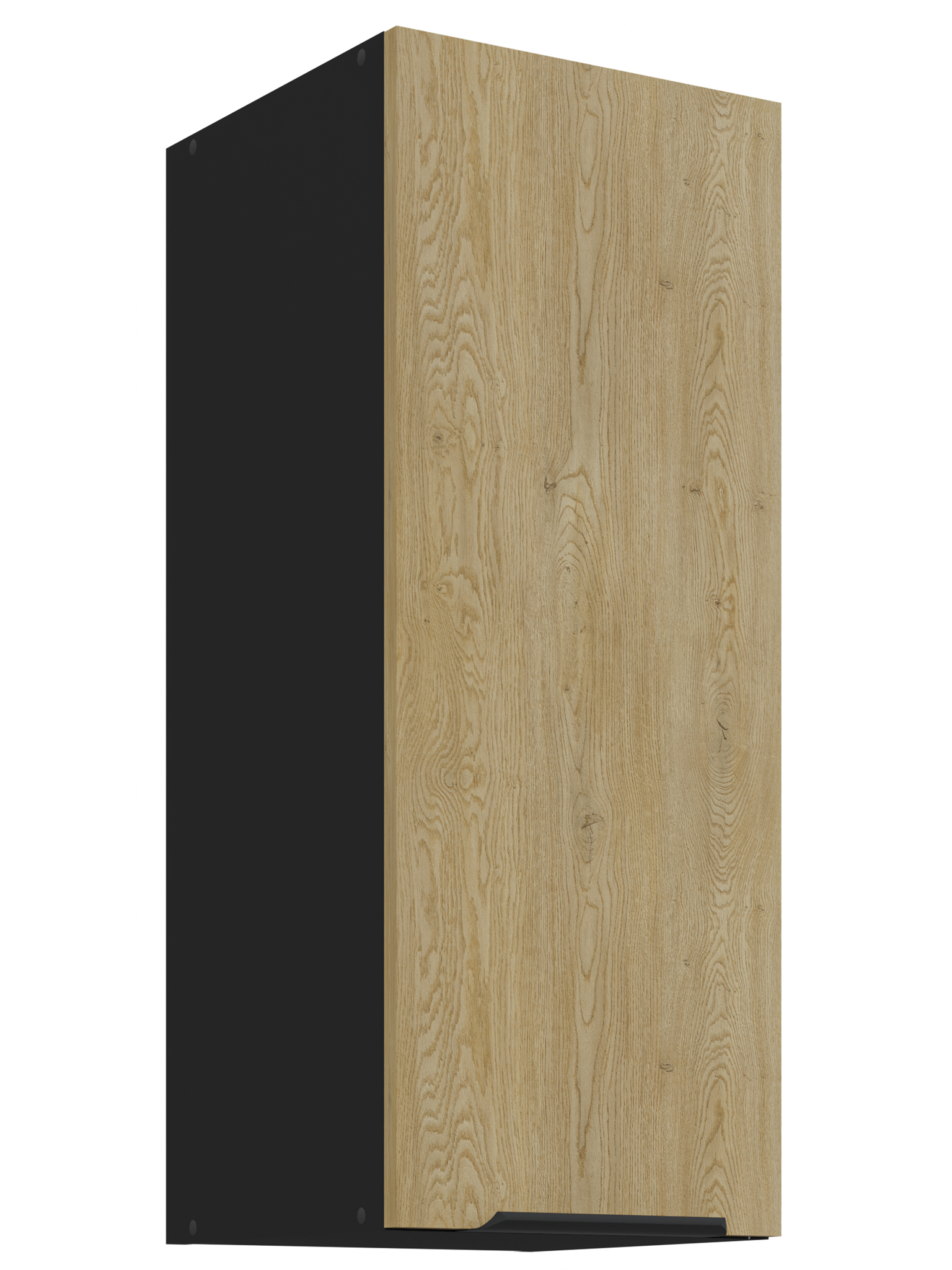 Kolekcja kuchenna CREMA to połączenie minimalistycznego designu z ciepłem naturalnego drewna. Fronty w delikatnym, drewnopodobnym wykończeniu harmonizują z matowymi, czarnymi akcentami, tworząc elegancką i ponadczasową przestrzeń. Geometryczne linie i proste uchwyty podkreślają nowoczesny charakter kolekcji, a przemyślane rozmieszczenie szafek zapewnia maksymalną funkcjonalność nawet w kompaktowej zabudowie. CREMA to idealny wybór dla osób, które cenią praktyczne rozwiązania, subtelną estetykę i ponadczasowy styl. Kolekcja posiada czarne uchwyty aluminiowe, które dodają elegancji i stylu. Dzięki systemowi cichego domykania frontów i szuflad, korzystanie z mebli jest wygodne oraz ergonomiczne. Meble kuchenne CREMA to doskonały wybór dla osób poszukujących nowoczesnego i funkcjonalnego wystroju kuchni. Szafki jednodrzwiowe są uniwersalne, o stronie otwierania można zdecydować przy montażu. Miejsca na uchwyty naznaczone nieprzelotowo od wewnątrz. Meble do samodzielnego montażu, według przejrzystej instrukcji.