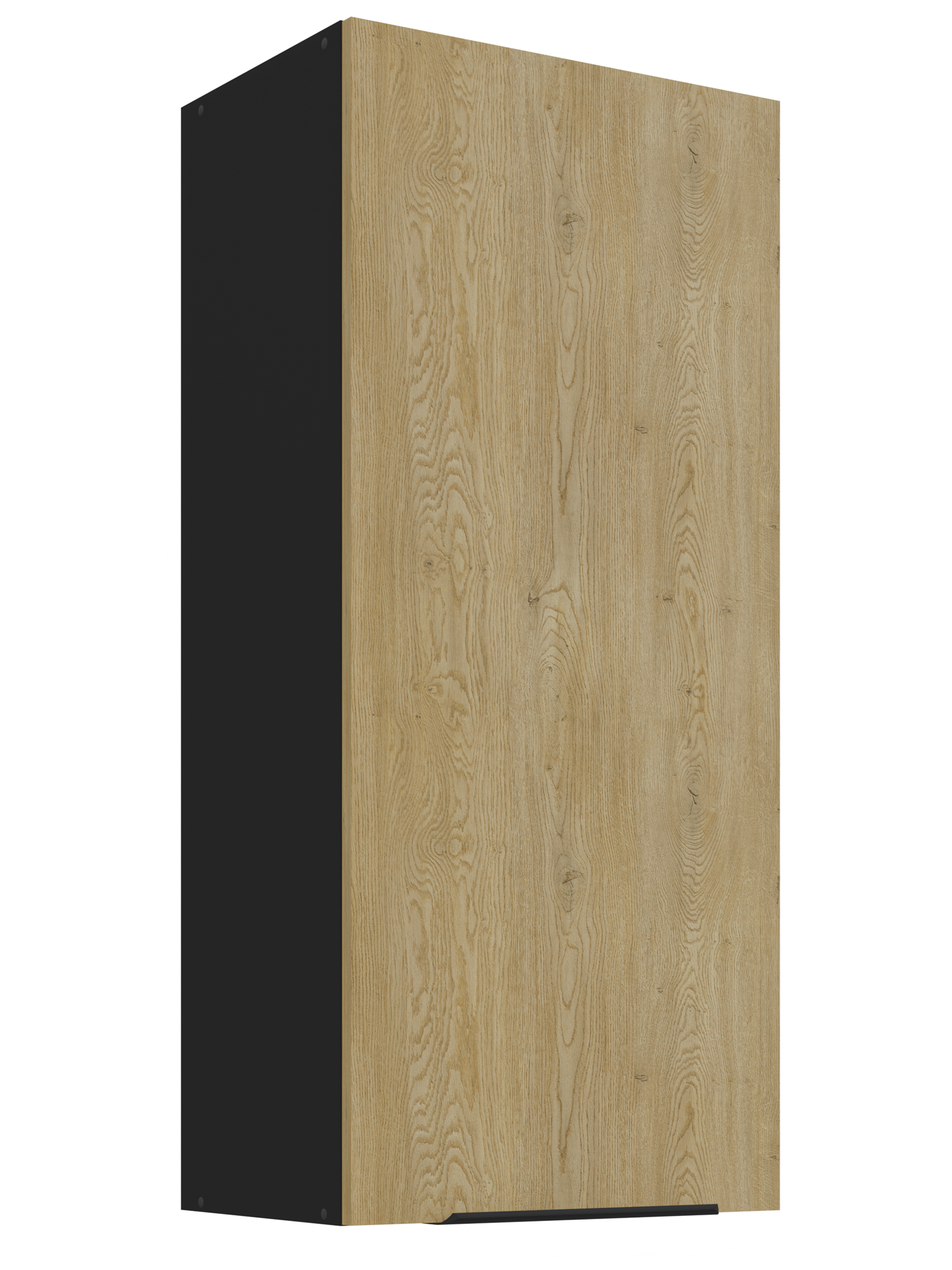 Kolekcja kuchenna CREMA to połączenie minimalistycznego designu z ciepłem naturalnego drewna. Fronty w delikatnym, drewnopodobnym wykończeniu harmonizują z matowymi, czarnymi akcentami, tworząc elegancką i ponadczasową przestrzeń. Geometryczne linie i proste uchwyty podkreślają nowoczesny charakter kolekcji, a przemyślane rozmieszczenie szafek zapewnia maksymalną funkcjonalność nawet w kompaktowej zabudowie. CREMA to idealny wybór dla osób, które cenią praktyczne rozwiązania, subtelną estetykę i ponadczasowy styl. Kolekcja posiada czarne uchwyty aluminiowe, które dodają elegancji i stylu. Dzięki systemowi cichego domykania frontów i szuflad, korzystanie z mebli jest wygodne oraz ergonomiczne. Meble kuchenne CREMA to doskonały wybór dla osób poszukujących nowoczesnego i funkcjonalnego wystroju kuchni. Szafki jednodrzwiowe są uniwersalne, o stronie otwierania można zdecydować przy montażu. Miejsca na uchwyty naznaczone nieprzelotowo od wewnątrz. Meble do samodzielnego montażu, według przejrzystej instrukcji.