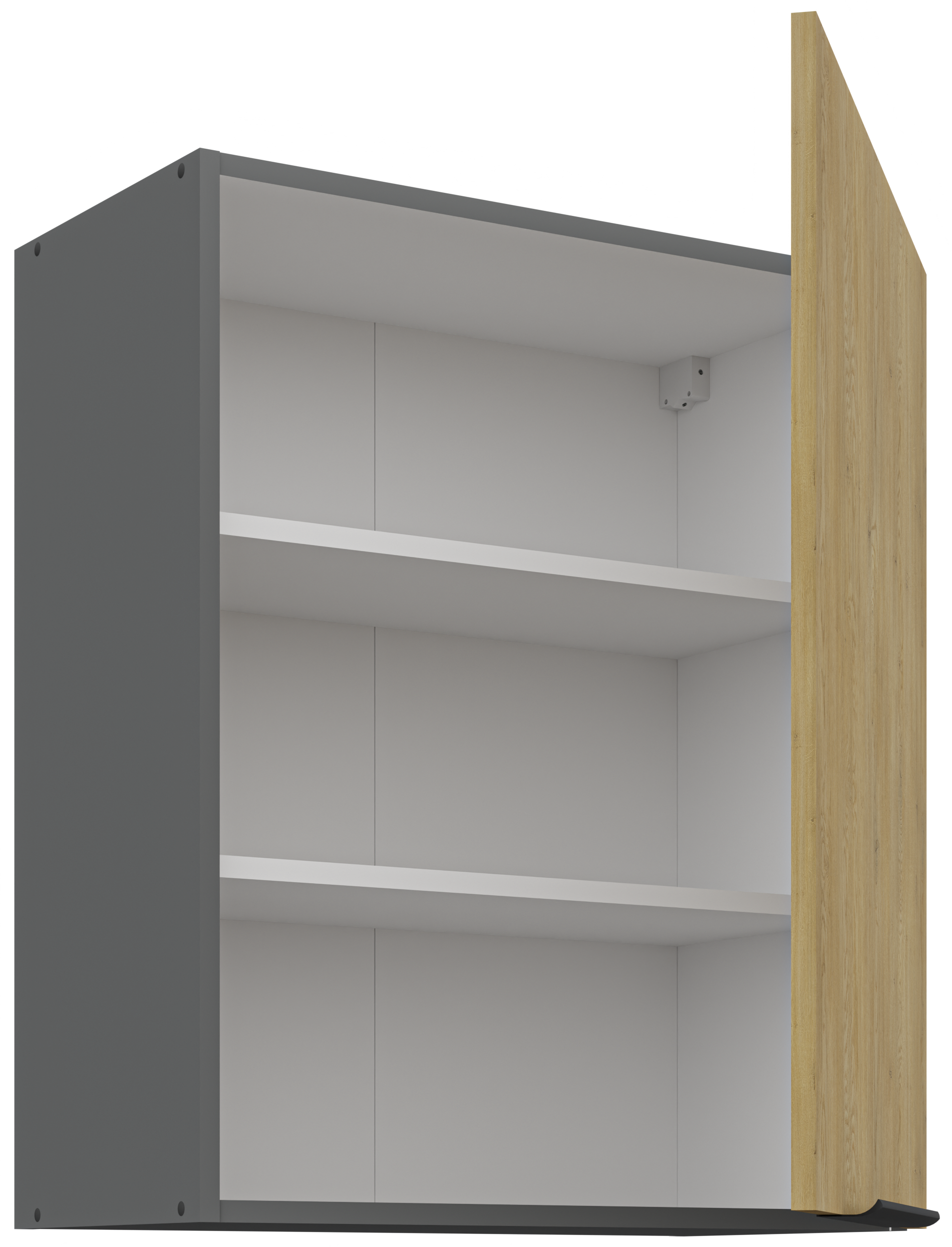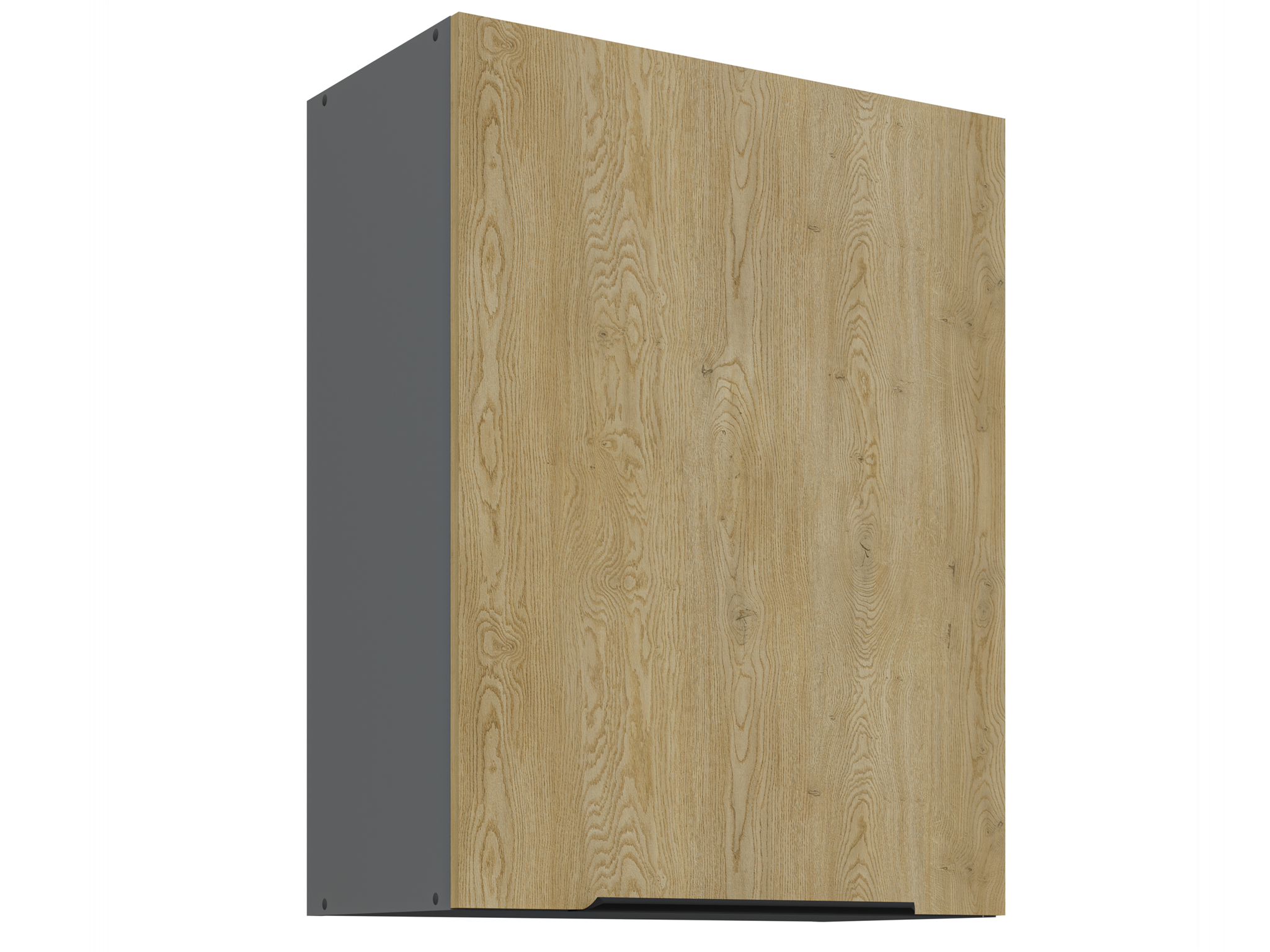 Kolekcja kuchenna CREMA to połączenie minimalistycznego designu z ciepłem naturalnego drewna. Fronty w delikatnym, drewnopodobnym wykończeniu harmonizują z matowymi, antracytowymi akcentami, tworząc elegancką i ponadczasową przestrzeń. Geometryczne linie i proste uchwyty podkreślają nowoczesny charakter kolekcji, a przemyślane rozmieszczenie szafek zapewnia maksymalną funkcjonalność nawet w kompaktowej zabudowie. CREMA to idealny wybór dla osób, które cenią praktyczne rozwiązania, subtelną estetykę i ponadczasowy styl. Kolekcja posiada czarne uchwyty aluminiowe, które dodają elegancji i stylu. Dzięki systemowi cichego domykania frontów i szuflad, korzystanie z mebli jest wygodne oraz ergonomiczne. Dodatkowym atutem są regulowane nogi. Meble kuchenne CREMA to doskonały wybór dla osób poszukujących nowoczesnego i funkcjonalnego wystroju kuchni. Szafki jednodrzwiowe są uniwersalne, o stronie otwierania można zdecydować przy montażu. Miejsca na uchwyty naznaczone nieprzelotowo od wewnątrz. Meble do samodzielnego montażu, według przejrzystej instrukcji.
