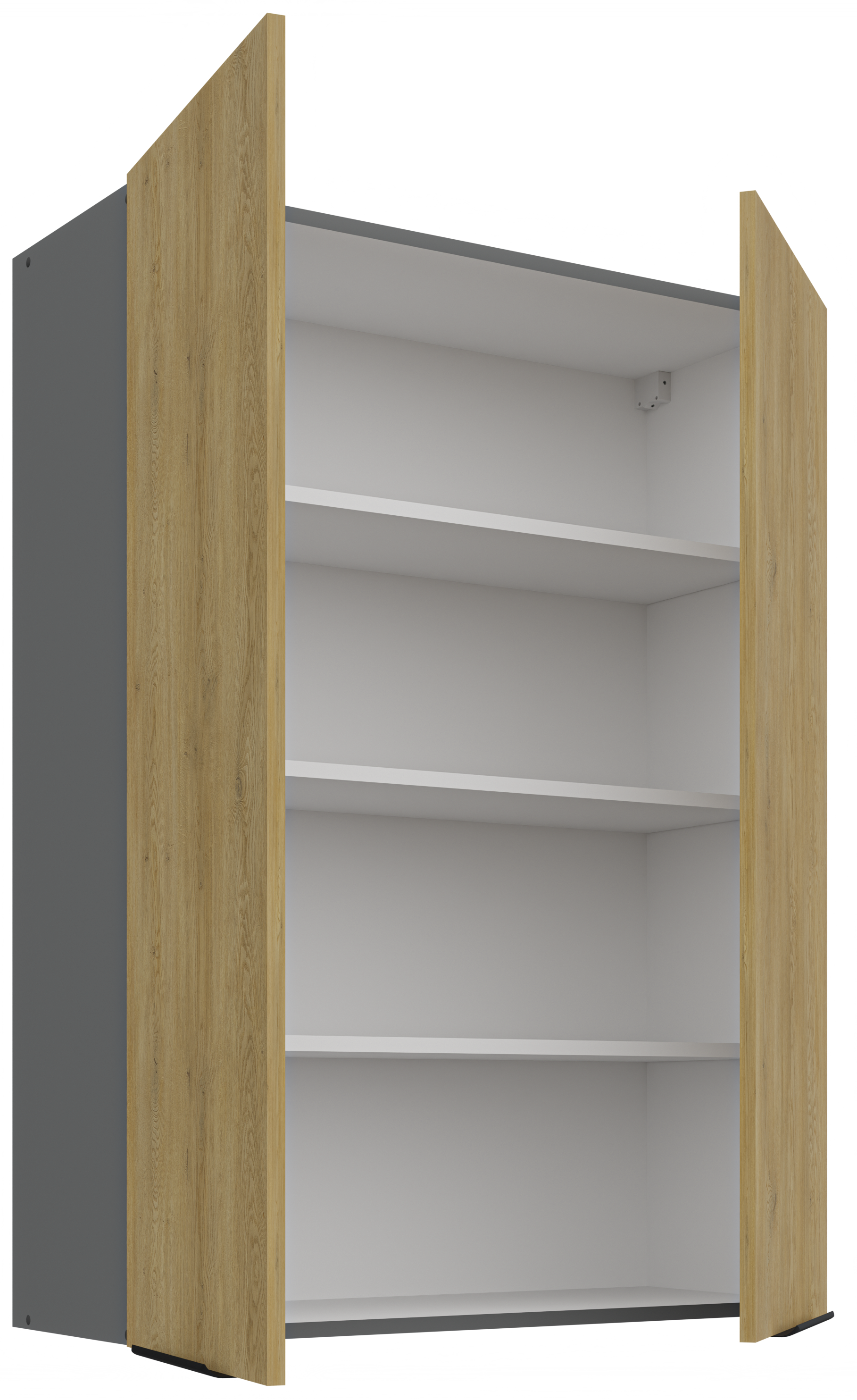 Kolekcja kuchenna CREMA to połączenie minimalistycznego designu z ciepłem naturalnego drewna. Fronty w delikatnym, drewnopodobnym wykończeniu harmonizują z matowymi, antracytowymi akcentami, tworząc elegancką i ponadczasową przestrzeń. Geometryczne linie i proste uchwyty podkreślają nowoczesny charakter kolekcji, a przemyślane rozmieszczenie szafek zapewnia maksymalną funkcjonalność nawet w kompaktowej zabudowie. CREMA to idealny wybór dla osób, które cenią praktyczne rozwiązania, subtelną estetykę i ponadczasowy styl. Kolekcja posiada czarne uchwyty aluminiowe, które dodają elegancji i stylu. Dzięki systemowi cichego domykania frontów i szuflad, korzystanie z mebli jest wygodne oraz ergonomiczne. Dodatkowym atutem są regulowane nogi. Meble kuchenne CREMA to doskonały wybór dla osób poszukujących nowoczesnego i funkcjonalnego wystroju kuchni. Szafki jednodrzwiowe są uniwersalne, o stronie otwierania można zdecydować przy montażu. Miejsca na uchwyty naznaczone nieprzelotowo od wewnątrz. Meble do samodzielnego montażu, według przejrzystej instrukcji.