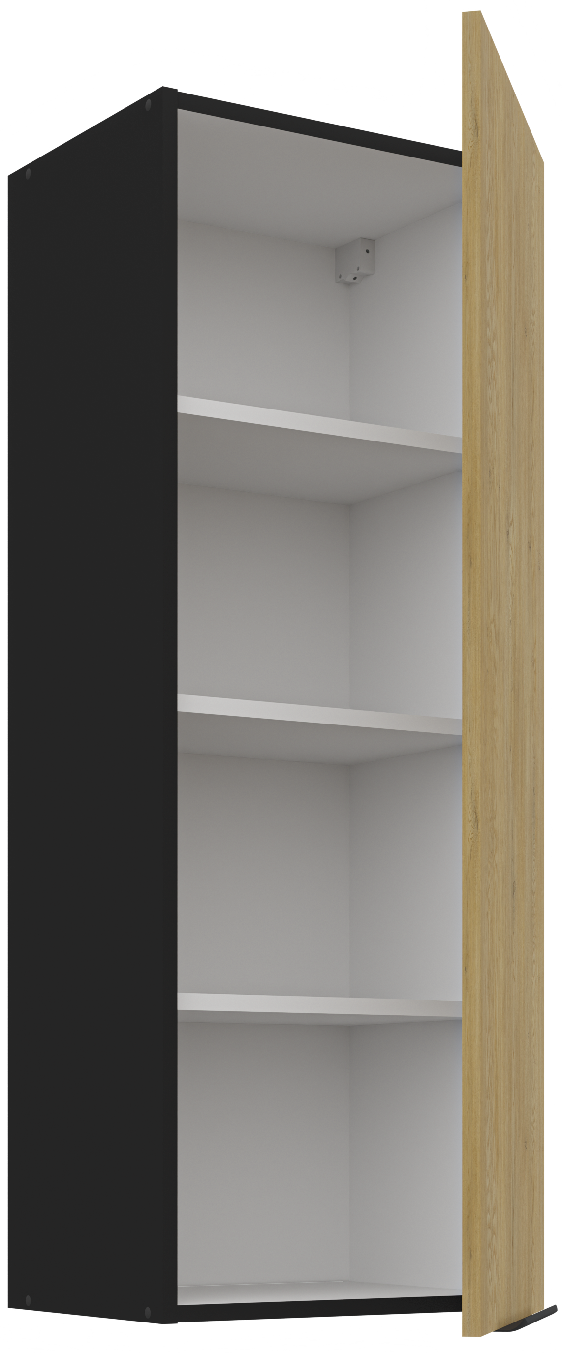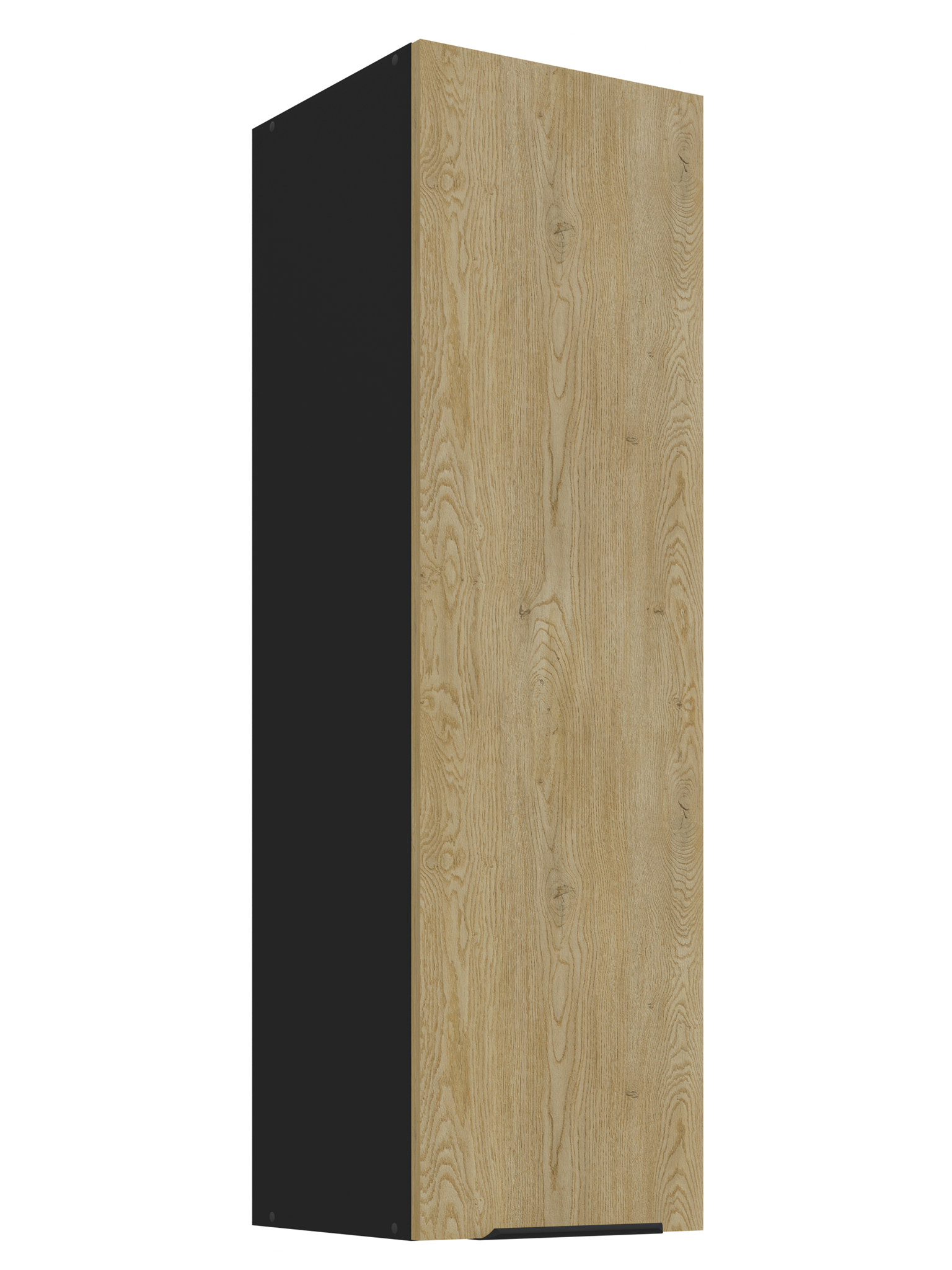Kolekcja kuchenna CREMA to połączenie minimalistycznego designu z ciepłem naturalnego drewna. Fronty w delikatnym, drewnopodobnym wykończeniu harmonizują z matowymi, czarnymi akcentami, tworząc elegancką i ponadczasową przestrzeń. Geometryczne linie i proste uchwyty podkreślają nowoczesny charakter kolekcji, a przemyślane rozmieszczenie szafek zapewnia maksymalną funkcjonalność nawet w kompaktowej zabudowie. CREMA to idealny wybór dla osób, które cenią praktyczne rozwiązania, subtelną estetykę i ponadczasowy styl. Kolekcja posiada czarne uchwyty aluminiowe, które dodają elegancji i stylu. Dzięki systemowi cichego domykania frontów i szuflad, korzystanie z mebli jest wygodne oraz ergonomiczne. Meble kuchenne CREMA to doskonały wybór dla osób poszukujących nowoczesnego i funkcjonalnego wystroju kuchni. Szafki jednodrzwiowe są uniwersalne, o stronie otwierania można zdecydować przy montażu. Miejsca na uchwyty naznaczone nieprzelotowo od wewnątrz. Meble do samodzielnego montażu, według przejrzystej instrukcji.