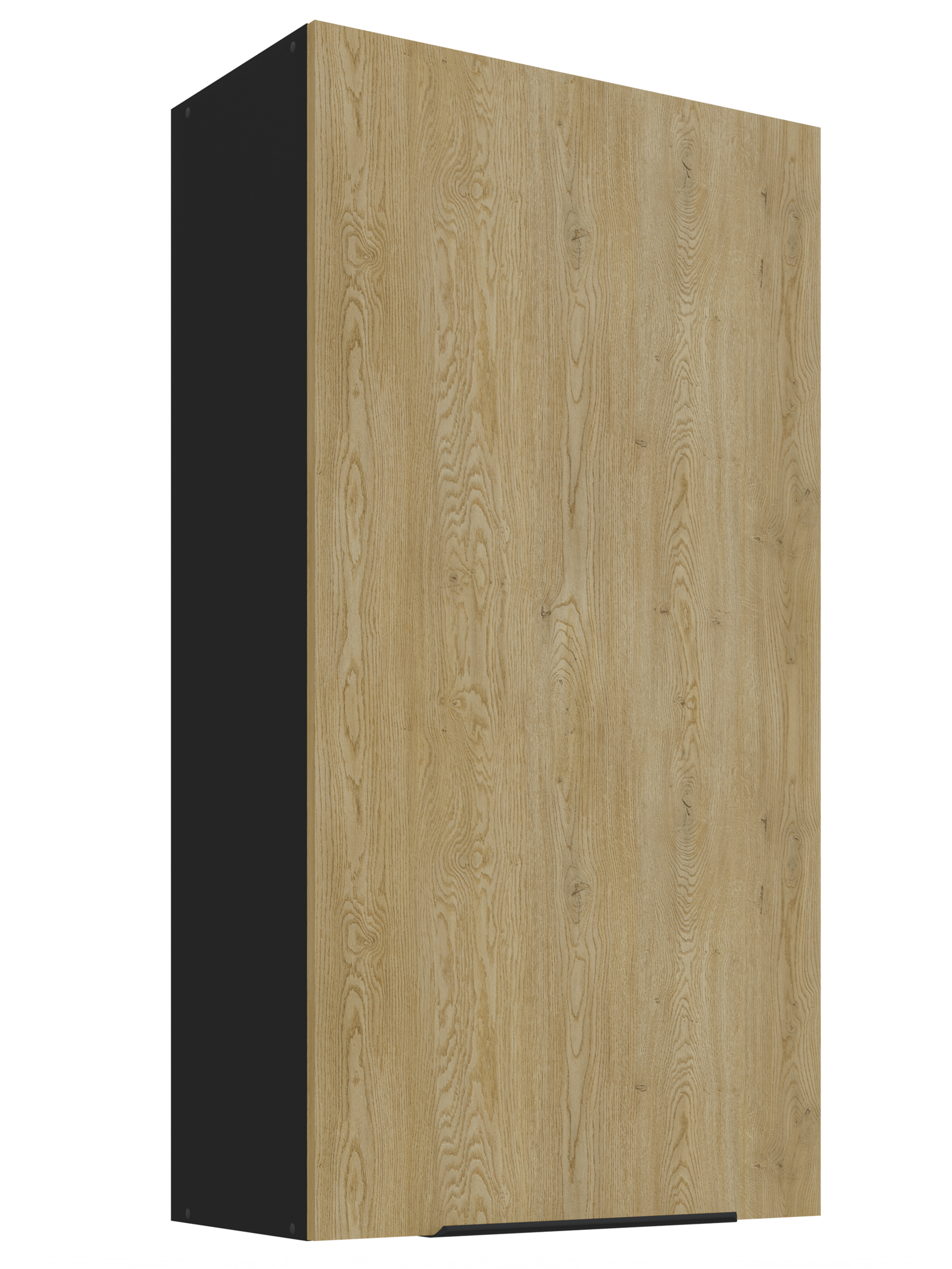 Kolekcja kuchenna CREMA to połączenie minimalistycznego designu z ciepłem naturalnego drewna. Fronty w delikatnym, drewnopodobnym wykończeniu harmonizują z matowymi, czarnymi akcentami, tworząc elegancką i ponadczasową przestrzeń. Geometryczne linie i proste uchwyty podkreślają nowoczesny charakter kolekcji, a przemyślane rozmieszczenie szafek zapewnia maksymalną funkcjonalność nawet w kompaktowej zabudowie. CREMA to idealny wybór dla osób, które cenią praktyczne rozwiązania, subtelną estetykę i ponadczasowy styl. Kolekcja posiada czarne uchwyty aluminiowe, które dodają elegancji i stylu. Dzięki systemowi cichego domykania frontów i szuflad, korzystanie z mebli jest wygodne oraz ergonomiczne. Meble kuchenne CREMA to doskonały wybór dla osób poszukujących nowoczesnego i funkcjonalnego wystroju kuchni. Szafki jednodrzwiowe są uniwersalne, o stronie otwierania można zdecydować przy montażu. Miejsca na uchwyty naznaczone nieprzelotowo od wewnątrz. Meble do samodzielnego montażu, według przejrzystej instrukcji.
