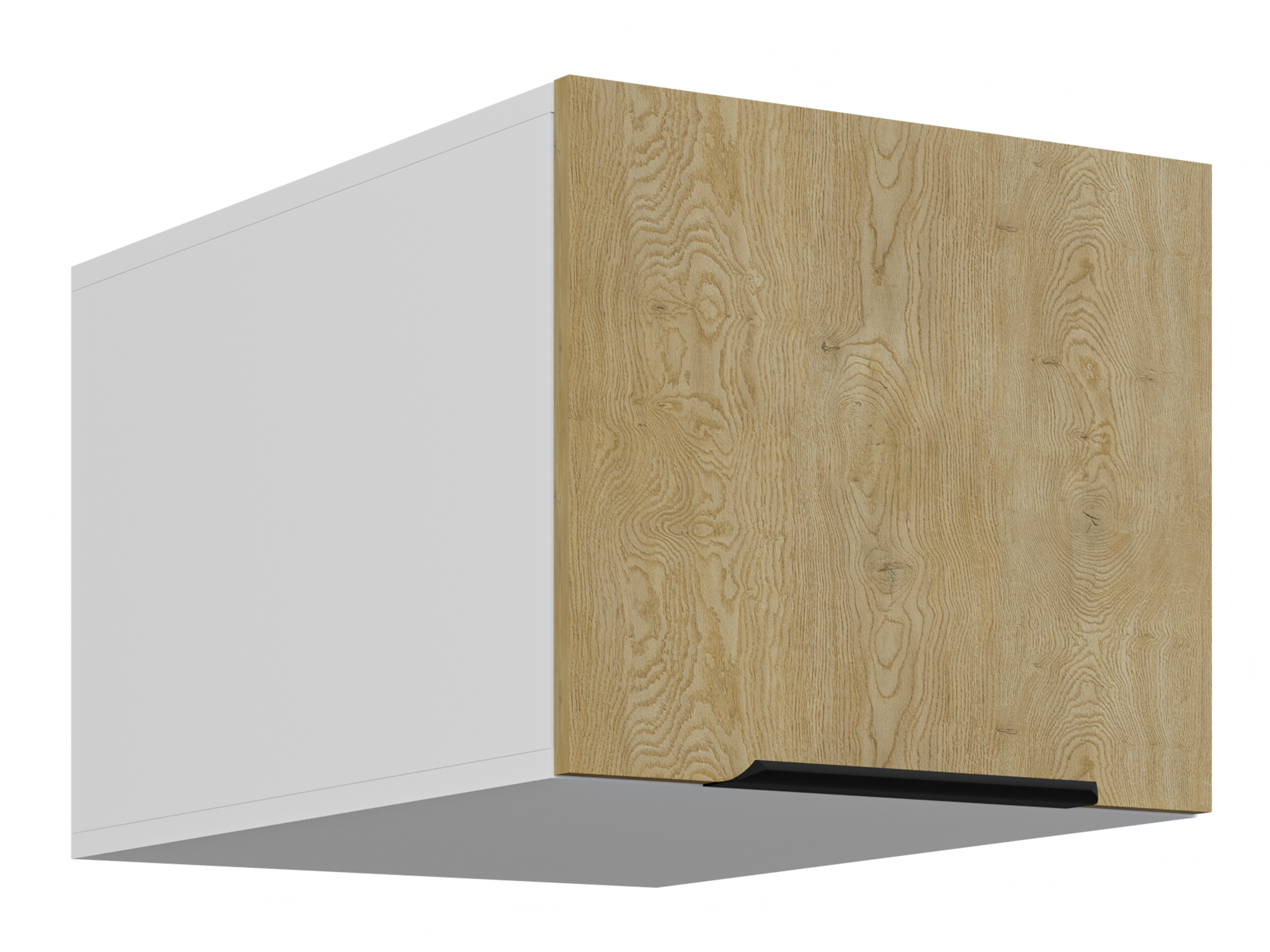 Kolekcja kuchenna CREMA to połączenie minimalistycznego designu z ciepłem naturalnego drewna. Fronty w delikatnym, drewnopodobnym wykończeniu harmonizują z matowymi, białymi akcentami, tworząc elegancką i ponadczasową przestrzeń. Geometryczne linie i proste uchwyty podkreślają nowoczesny charakter kolekcji, a przemyślane rozmieszczenie szafek zapewnia maksymalną funkcjonalność nawet w kompaktowej zabudowie. CREMA to idealny wybór dla osób, które cenią praktyczne rozwiązania, subtelną estetykę i ponadczasowy styl. Kolekcja posiada czarne uchwyty aluminiowe, które dodają elegancji i stylu. Dzięki systemowi cichego domykania frontów i szuflad, korzystanie z mebli jest wygodne oraz ergonomiczne. Meble kuchenne CREMA to doskonały wybór dla osób poszukujących nowoczesnego i funkcjonalnego wystroju kuchni. Szafki jednodrzwiowe są uniwersalne, o stronie otwierania można zdecydować przy montażu. Miejsca na uchwyty naznaczone nieprzelotowo od wewnątrz. Meble do samodzielnego montażu, według przejrzystej instrukcji.