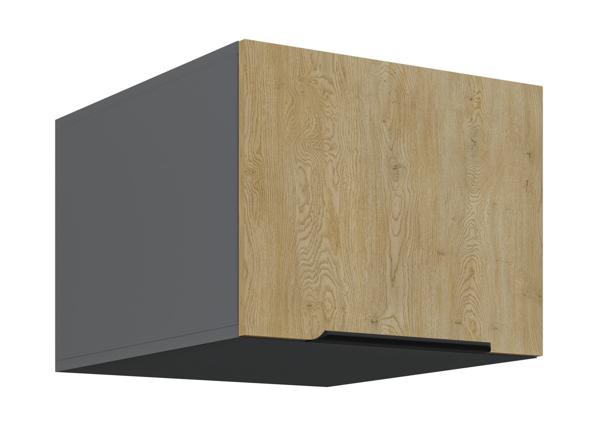 Kolekcja kuchenna CREMA to połączenie minimalistycznego designu z ciepłem naturalnego drewna. Fronty w delikatnym, drewnopodobnym wykończeniu harmonizują z matowymi, antracytowymi akcentami, tworząc elegancką i ponadczasową przestrzeń. Geometryczne linie i proste uchwyty podkreślają nowoczesny charakter kolekcji, a przemyślane rozmieszczenie szafek zapewnia maksymalną funkcjonalność nawet w kompaktowej zabudowie. CREMA to idealny wybór dla osób, które cenią praktyczne rozwiązania, subtelną estetykę i ponadczasowy styl. Kolekcja posiada czarne uchwyty aluminiowe, które dodają elegancji i stylu. Dzięki systemowi cichego domykania frontów i szuflad, korzystanie z mebli jest wygodne oraz ergonomiczne. Dodatkowym atutem są regulowane nogi. Meble kuchenne CREMA to doskonały wybór dla osób poszukujących nowoczesnego i funkcjonalnego wystroju kuchni. Szafki jednodrzwiowe są uniwersalne, o stronie otwierania można zdecydować przy montażu. Miejsca na uchwyty naznaczone nieprzelotowo od wewnątrz. Meble do samodzielnego montażu, według przejrzystej instrukcji.