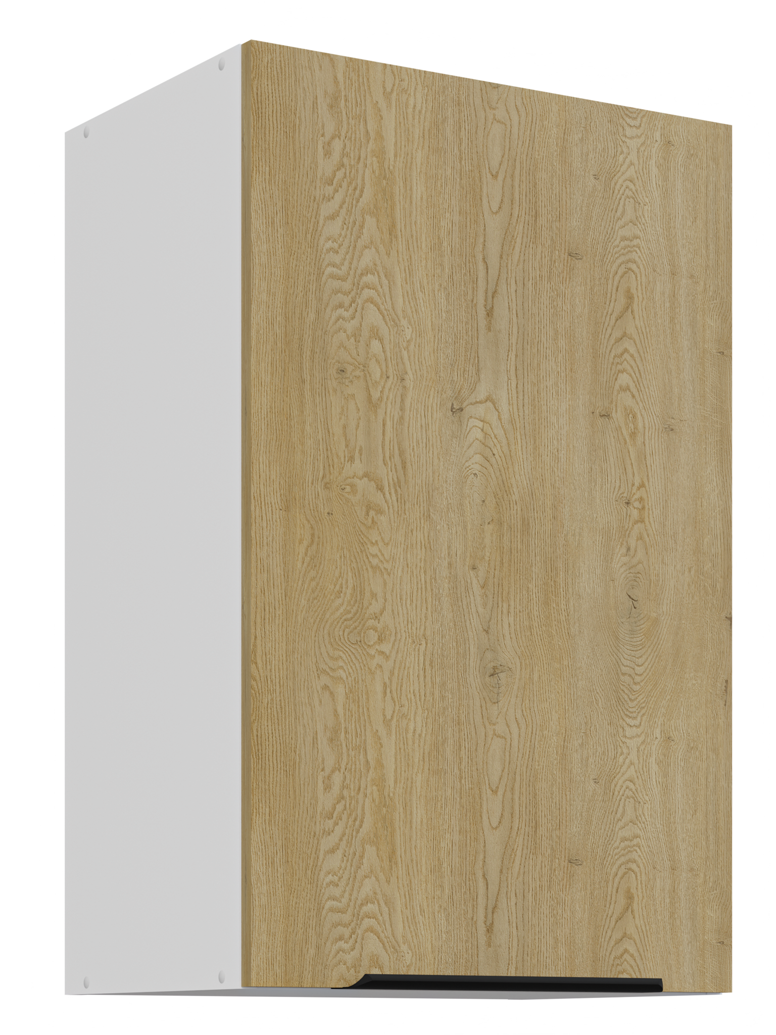Kolekcja kuchenna CREMA to połączenie minimalistycznego designu z ciepłem naturalnego drewna. Fronty w delikatnym, drewnopodobnym wykończeniu harmonizują z matowymi, białymi akcentami, tworząc elegancką i ponadczasową przestrzeń. Geometryczne linie i proste uchwyty podkreślają nowoczesny charakter kolekcji, a przemyślane rozmieszczenie szafek zapewnia maksymalną funkcjonalność nawet w kompaktowej zabudowie. CREMA to idealny wybór dla osób, które cenią praktyczne rozwiązania, subtelną estetykę i ponadczasowy styl. Kolekcja posiada czarne uchwyty aluminiowe, które dodają elegancji i stylu. Dzięki systemowi cichego domykania frontów i szuflad, korzystanie z mebli jest wygodne oraz ergonomiczne. Meble kuchenne CREMA to doskonały wybór dla osób poszukujących nowoczesnego i funkcjonalnego wystroju kuchni. Szafki jednodrzwiowe są uniwersalne, o stronie otwierania można zdecydować przy montażu. Miejsca na uchwyty naznaczone nieprzelotowo od wewnątrz. Meble do samodzielnego montażu, według przejrzystej instrukcji.