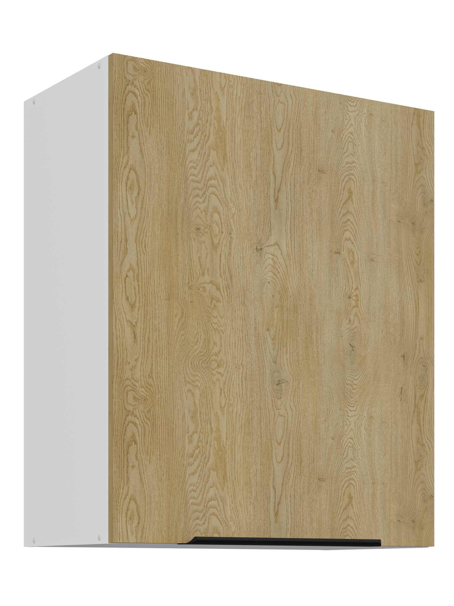 Kolekcja kuchenna CREMA to połączenie minimalistycznego designu z ciepłem naturalnego drewna. Fronty w delikatnym, drewnopodobnym wykończeniu harmonizują z matowymi, białymi akcentami, tworząc elegancką i ponadczasową przestrzeń. Geometryczne linie i proste uchwyty podkreślają nowoczesny charakter kolekcji, a przemyślane rozmieszczenie szafek zapewnia maksymalną funkcjonalność nawet w kompaktowej zabudowie. CREMA to idealny wybór dla osób, które cenią praktyczne rozwiązania, subtelną estetykę i ponadczasowy styl. Kolekcja posiada czarne uchwyty aluminiowe, które dodają elegancji i stylu. Dzięki systemowi cichego domykania frontów i szuflad, korzystanie z mebli jest wygodne oraz ergonomiczne. Meble kuchenne CREMA to doskonały wybór dla osób poszukujących nowoczesnego i funkcjonalnego wystroju kuchni. Szafki jednodrzwiowe są uniwersalne, o stronie otwierania można zdecydować przy montażu. Miejsca na uchwyty naznaczone nieprzelotowo od wewnątrz. Meble do samodzielnego montażu, według przejrzystej instrukcji.