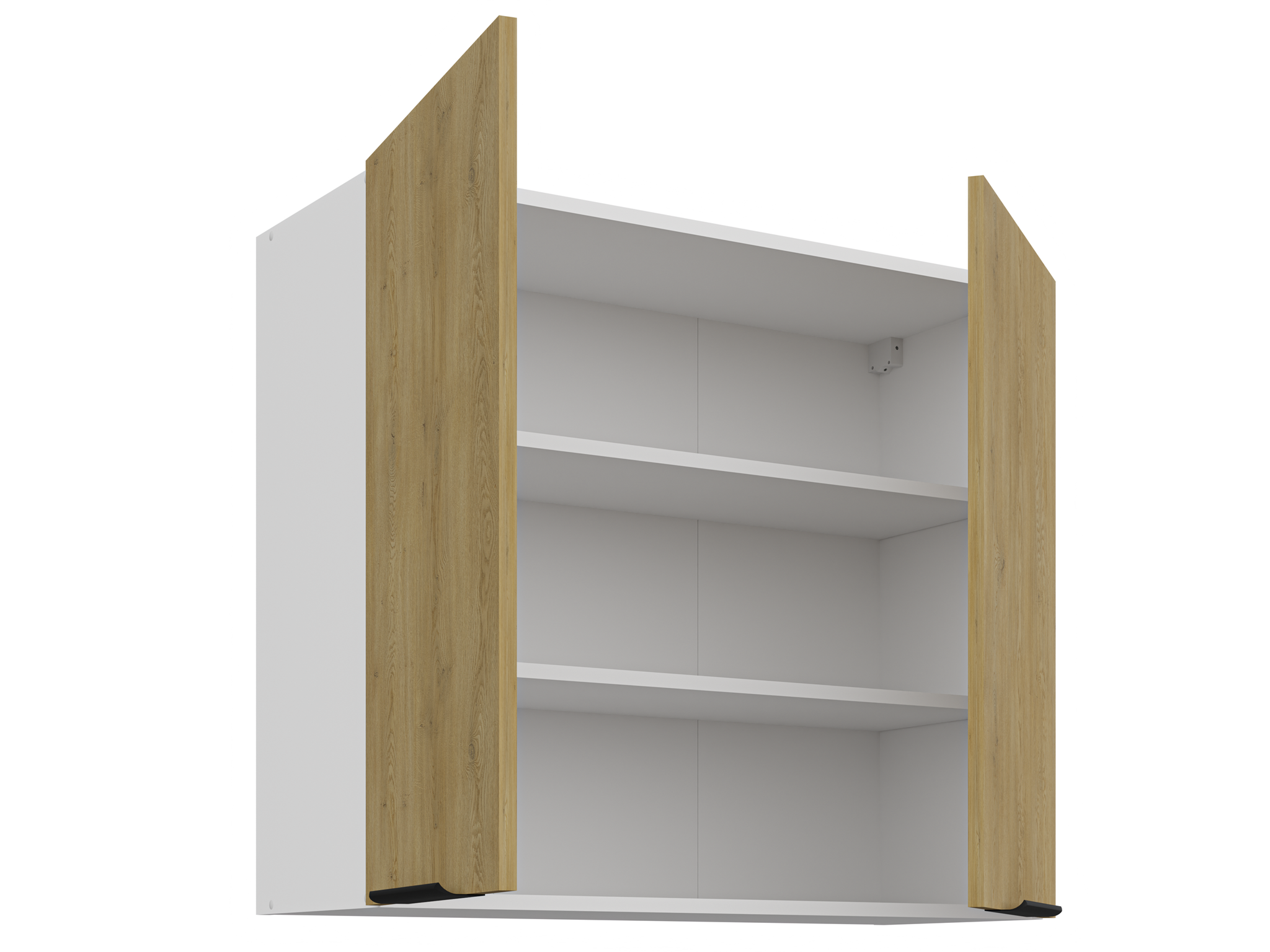 Kolekcja kuchenna CREMA to połączenie minimalistycznego designu z ciepłem naturalnego drewna. Fronty w delikatnym, drewnopodobnym wykończeniu harmonizują z matowymi, białymi akcentami, tworząc elegancką i ponadczasową przestrzeń. Geometryczne linie i proste uchwyty podkreślają nowoczesny charakter kolekcji, a przemyślane rozmieszczenie szafek zapewnia maksymalną funkcjonalność nawet w kompaktowej zabudowie. CREMA to idealny wybór dla osób, które cenią praktyczne rozwiązania, subtelną estetykę i ponadczasowy styl. Kolekcja posiada czarne uchwyty aluminiowe, które dodają elegancji i stylu. Dzięki systemowi cichego domykania frontów i szuflad, korzystanie z mebli jest wygodne oraz ergonomiczne. Meble kuchenne CREMA to doskonały wybór dla osób poszukujących nowoczesnego i funkcjonalnego wystroju kuchni. Szafki jednodrzwiowe są uniwersalne, o stronie otwierania można zdecydować przy montażu. Miejsca na uchwyty naznaczone nieprzelotowo od wewnątrz. Meble do samodzielnego montażu, według przejrzystej instrukcji.