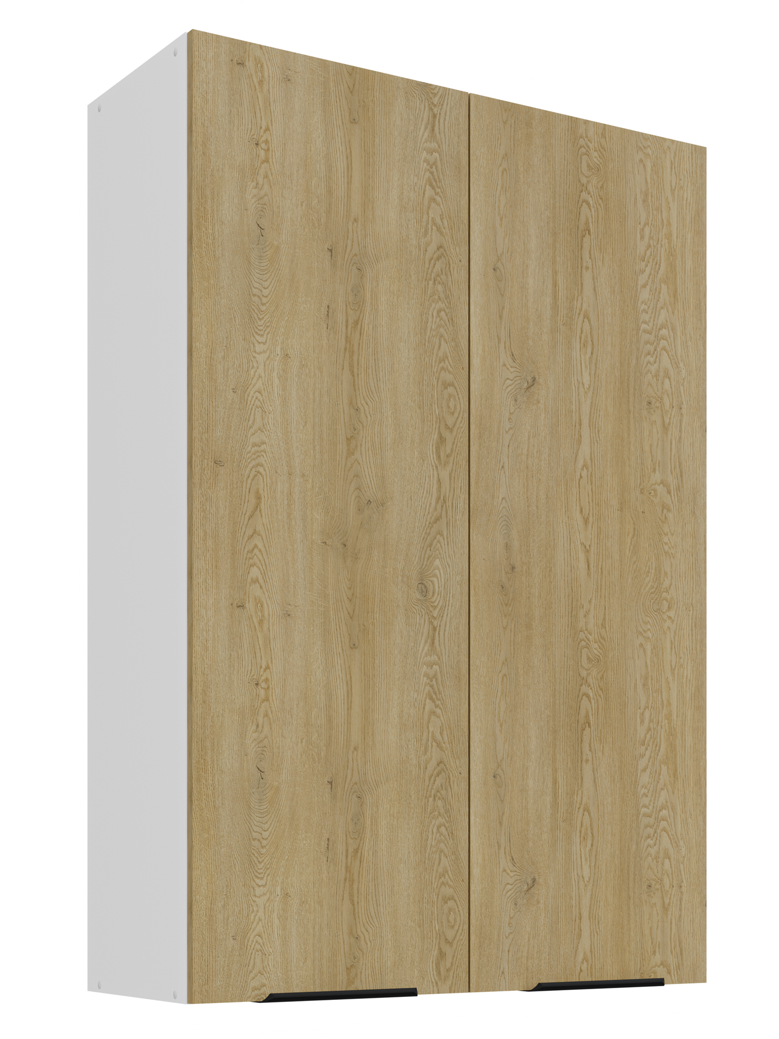 Kolekcja kuchenna CREMA to połączenie minimalistycznego designu z ciepłem naturalnego drewna. Fronty w delikatnym, drewnopodobnym wykończeniu harmonizują z matowymi, białymi akcentami, tworząc elegancką i ponadczasową przestrzeń. Geometryczne linie i proste uchwyty podkreślają nowoczesny charakter kolekcji, a przemyślane rozmieszczenie szafek zapewnia maksymalną funkcjonalność nawet w kompaktowej zabudowie. CREMA to idealny wybór dla osób, które cenią praktyczne rozwiązania, subtelną estetykę i ponadczasowy styl. Kolekcja posiada czarne uchwyty aluminiowe, które dodają elegancji i stylu. Dzięki systemowi cichego domykania frontów i szuflad, korzystanie z mebli jest wygodne oraz ergonomiczne. Meble kuchenne CREMA to doskonały wybór dla osób poszukujących nowoczesnego i funkcjonalnego wystroju kuchni. Szafki jednodrzwiowe są uniwersalne, o stronie otwierania można zdecydować przy montażu. Miejsca na uchwyty naznaczone nieprzelotowo od wewnątrz. Meble do samodzielnego montażu, według przejrzystej instrukcji.