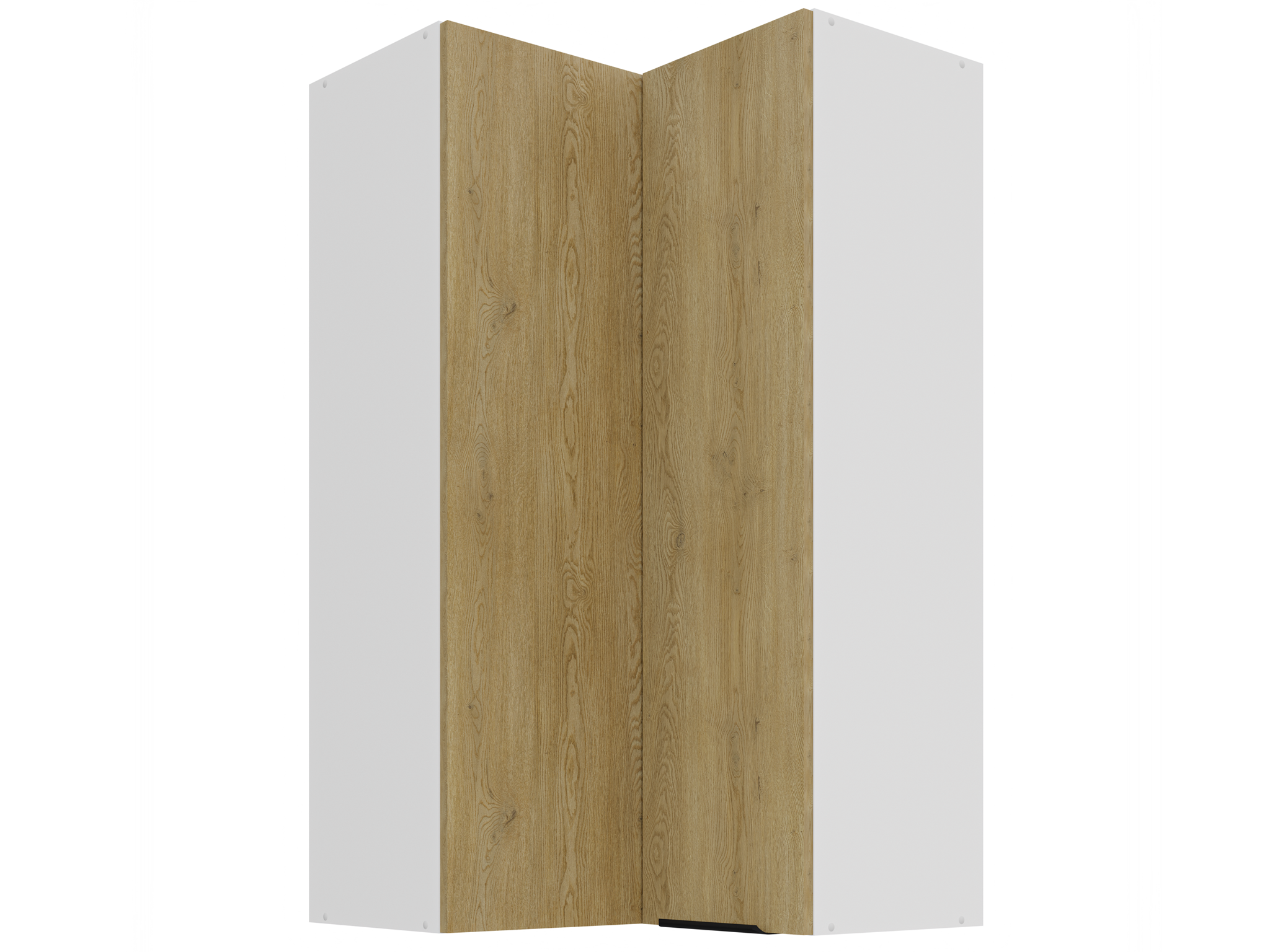 Kolekcja kuchenna CREMA to połączenie minimalistycznego designu z ciepłem naturalnego drewna. Fronty w delikatnym, drewnopodobnym wykończeniu harmonizują z matowymi, białymi akcentami, tworząc elegancką i ponadczasową przestrzeń. Geometryczne linie i proste uchwyty podkreślają nowoczesny charakter kolekcji, a przemyślane rozmieszczenie szafek zapewnia maksymalną funkcjonalność nawet w kompaktowej zabudowie. CREMA to idealny wybór dla osób, które cenią praktyczne rozwiązania, subtelną estetykę i ponadczasowy styl. Kolekcja posiada czarne uchwyty aluminiowe, które dodają elegancji i stylu. Dzięki systemowi cichego domykania frontów i szuflad, korzystanie z mebli jest wygodne oraz ergonomiczne. Meble kuchenne CREMA to doskonały wybór dla osób poszukujących nowoczesnego i funkcjonalnego wystroju kuchni. Szafki jednodrzwiowe są uniwersalne, o stronie otwierania można zdecydować przy montażu. Miejsca na uchwyty naznaczone nieprzelotowo od wewnątrz. Meble do samodzielnego montażu, według przejrzystej instrukcji.