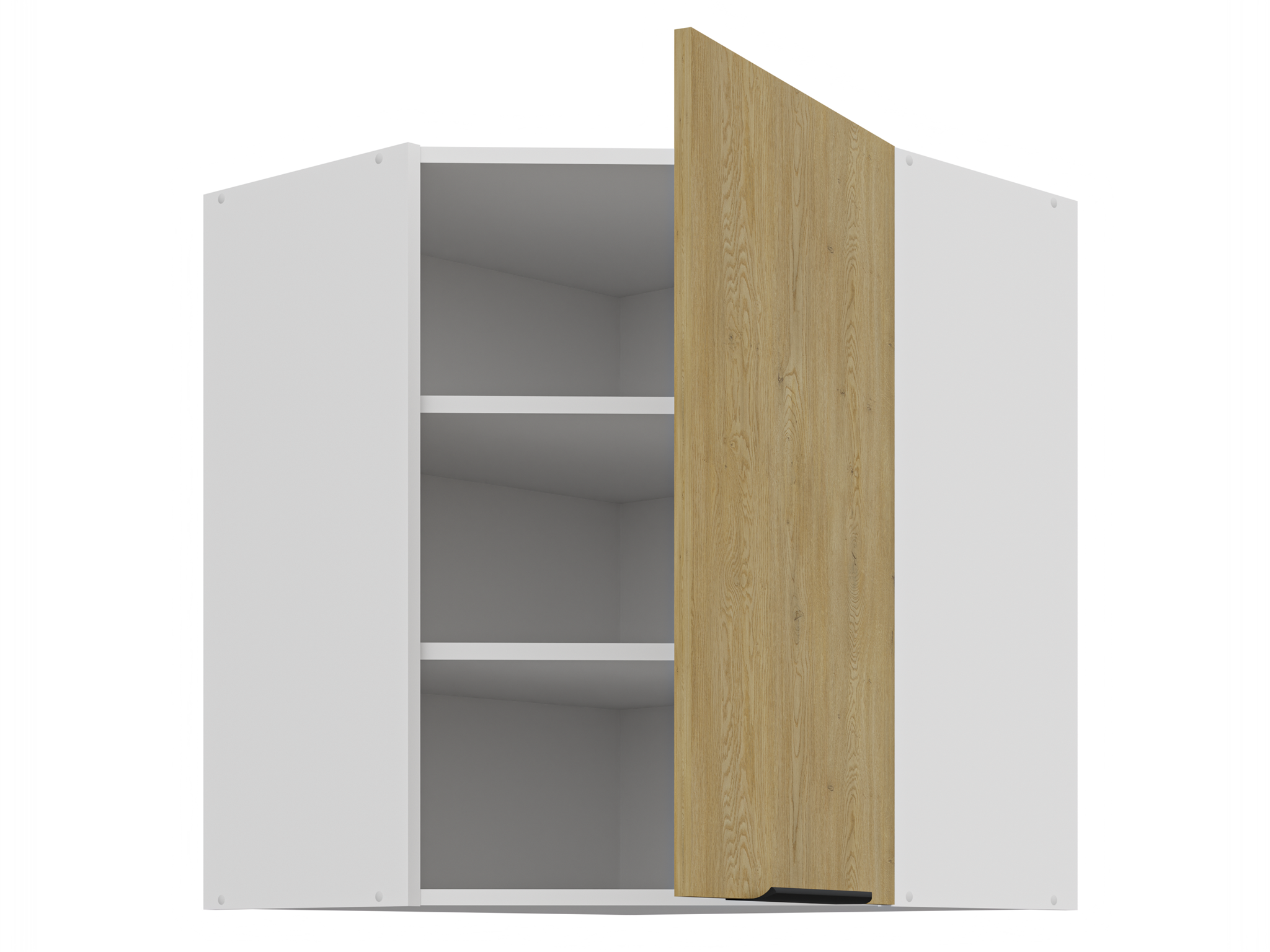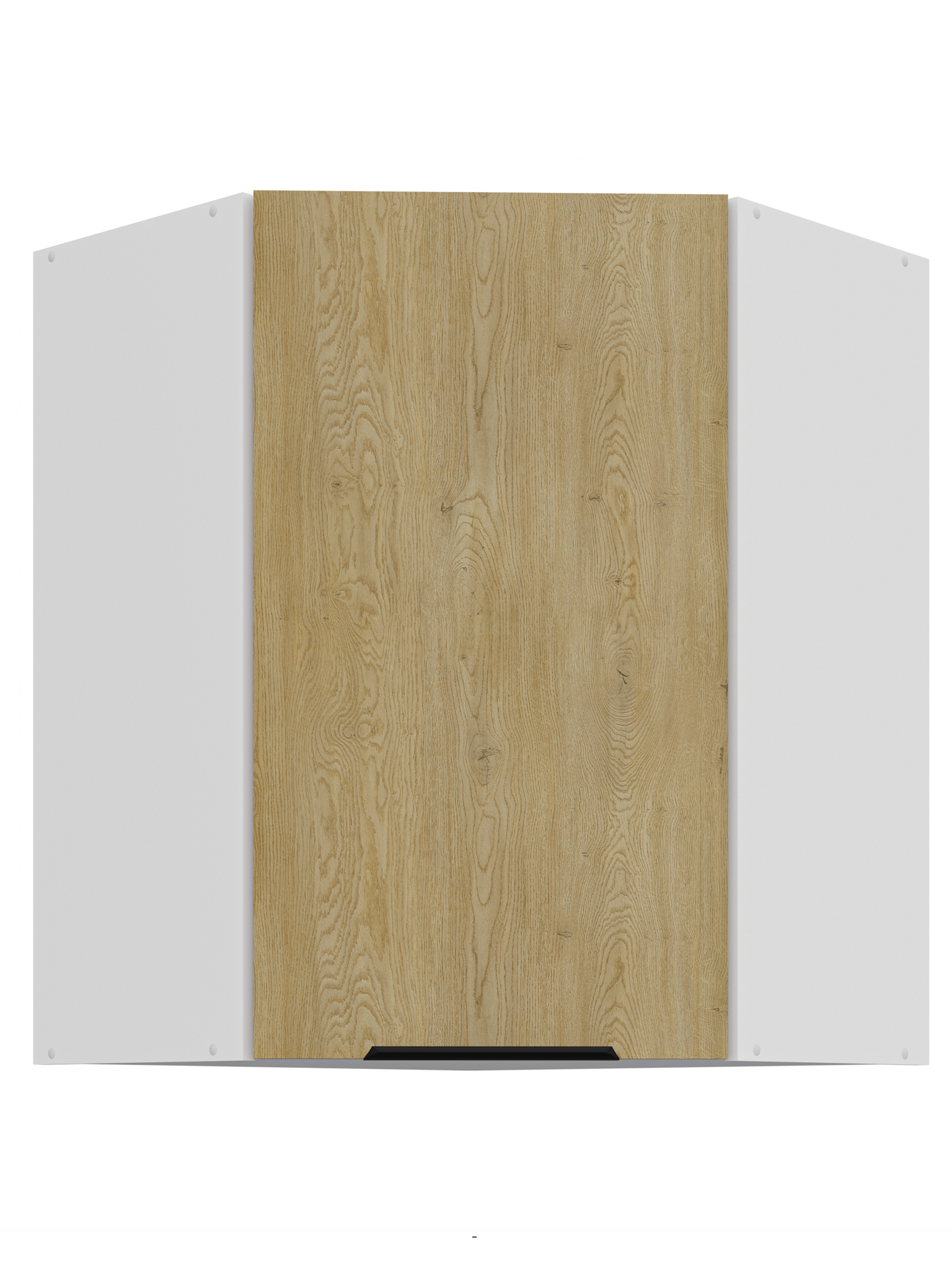 Kolekcja kuchenna CREMA to połączenie minimalistycznego designu z ciepłem naturalnego drewna. Fronty w delikatnym, drewnopodobnym wykończeniu harmonizują z matowymi, białymi akcentami, tworząc elegancką i ponadczasową przestrzeń. Geometryczne linie i proste uchwyty podkreślają nowoczesny charakter kolekcji, a przemyślane rozmieszczenie szafek zapewnia maksymalną funkcjonalność nawet w kompaktowej zabudowie. CREMA to idealny wybór dla osób, które cenią praktyczne rozwiązania, subtelną estetykę i ponadczasowy styl. Kolekcja posiada czarne uchwyty aluminiowe, które dodają elegancji i stylu. Dzięki systemowi cichego domykania frontów i szuflad, korzystanie z mebli jest wygodne oraz ergonomiczne. Meble kuchenne CREMA to doskonały wybór dla osób poszukujących nowoczesnego i funkcjonalnego wystroju kuchni. Szafki jednodrzwiowe są uniwersalne, o stronie otwierania można zdecydować przy montażu. Miejsca na uchwyty naznaczone nieprzelotowo od wewnątrz. Meble do samodzielnego montażu, według przejrzystej instrukcji.