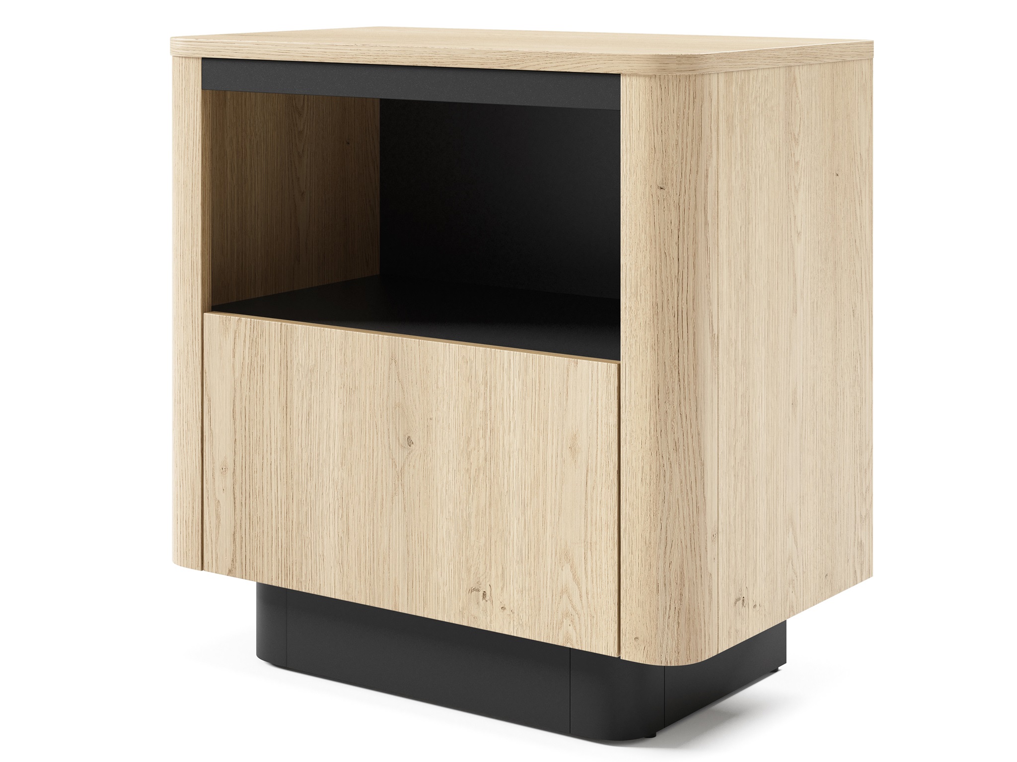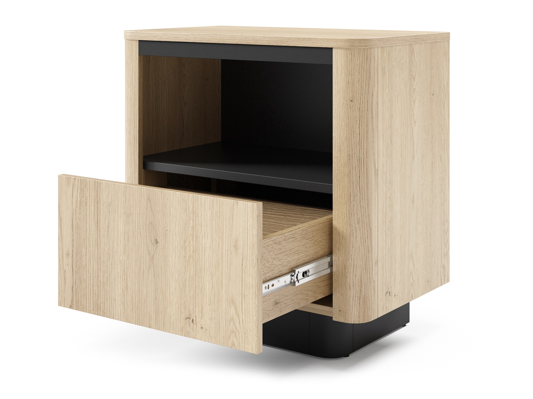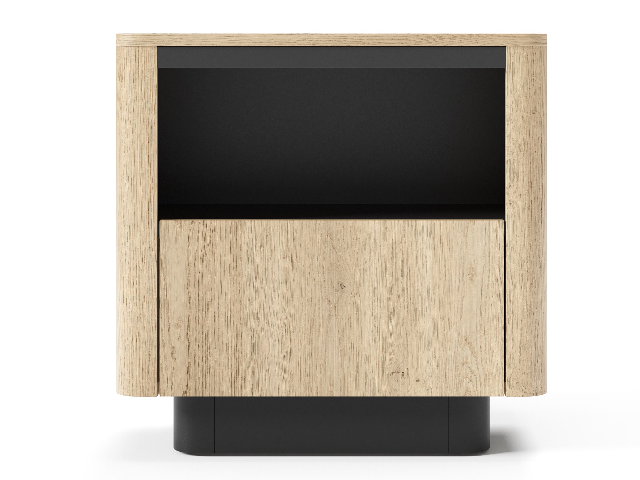 Kolekcja TIAGO to połączenie naturalnej elegancji i nowoczesnego minimalizmu. Jasny odcień dębu Cremona zestawiony z czarnymi akcentami nadaje wnętrzom wyjątkowego charakteru – przytulnego, a zarazem stylowego. Subtelnie zaokrąglone boki, ozdobne listwy oraz czarne cokoły podkreślają dopracowane wzornictwo, które zachwyci miłośników estetyki w stylu japandi.
