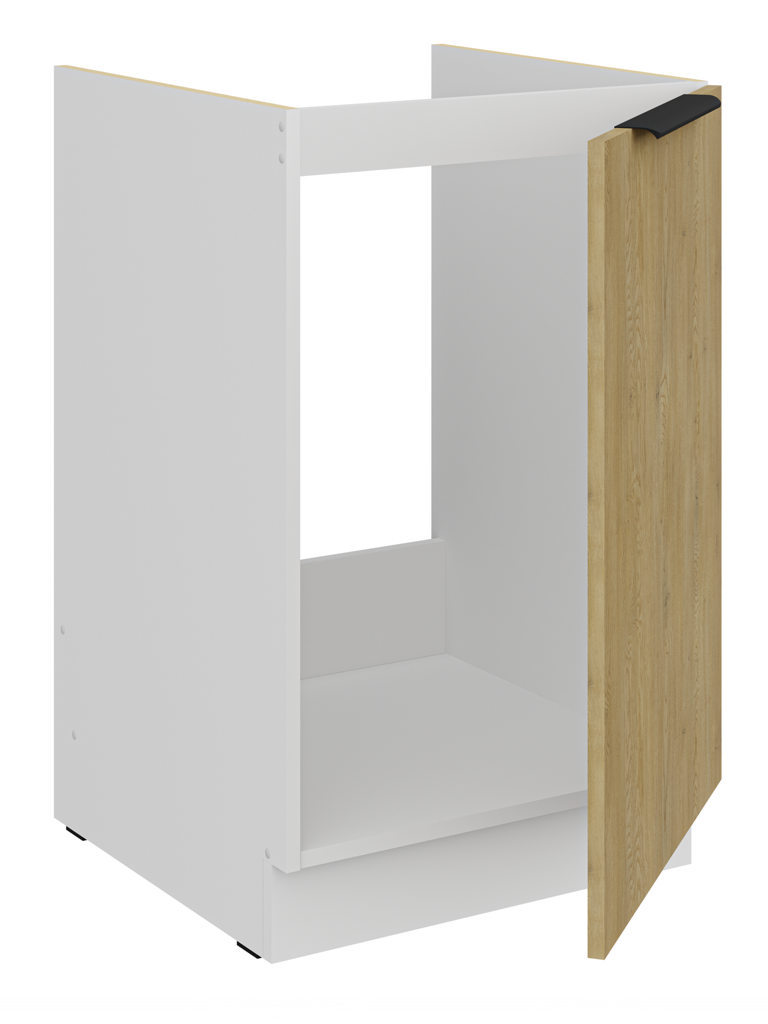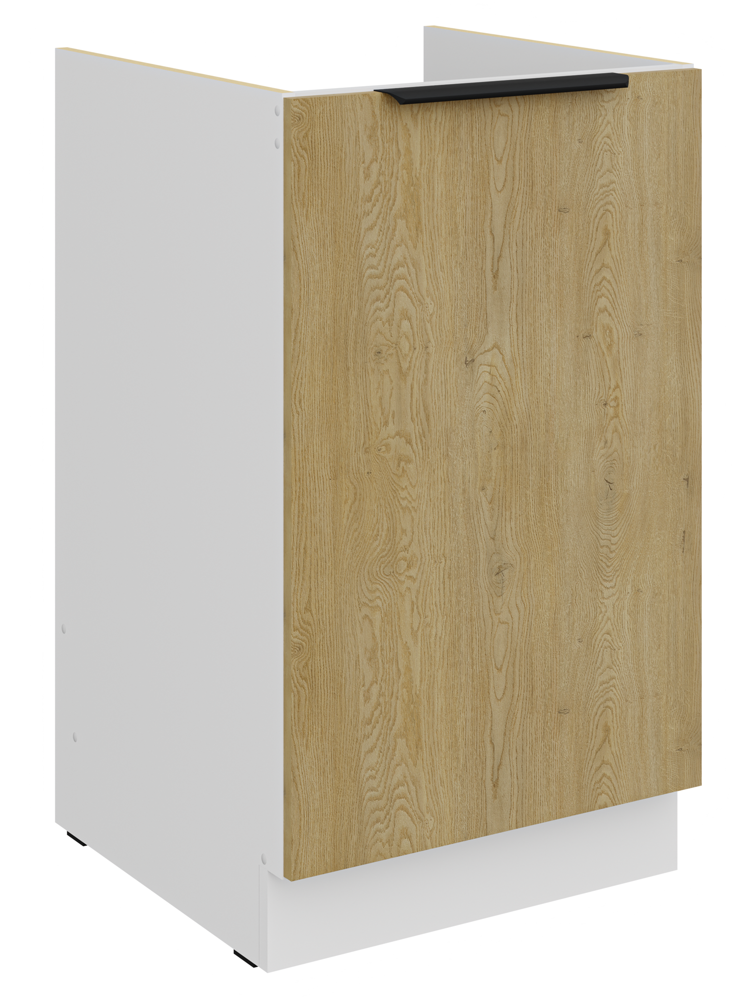 Kolekcja kuchenna CREMA to połączenie minimalistycznego designu z ciepłem naturalnego drewna. Fronty w delikatnym, drewnopodobnym wykończeniu harmonizują z matowymi, białymi akcentami, tworząc elegancką i ponadczasową przestrzeń. Geometryczne linie i proste uchwyty podkreślają nowoczesny charakter kolekcji, a przemyślane rozmieszczenie szafek zapewnia maksymalną funkcjonalność nawet w kompaktowej zabudowie. CREMA to idealny wybór dla osób, które cenią praktyczne rozwiązania, subtelną estetykę i ponadczasowy styl. Kolekcja posiada czarne uchwyty aluminiowe, które dodają elegancji i stylu. Dzięki systemowi cichego domykania frontów i szuflad, korzystanie z mebli jest wygodne oraz ergonomiczne. Meble kuchenne CREMA to doskonały wybór dla osób poszukujących nowoczesnego i funkcjonalnego wystroju kuchni. Szafki jednodrzwiowe są uniwersalne, o stronie otwierania można zdecydować przy montażu. Miejsca na uchwyty naznaczone nieprzelotowo od wewnątrz. Meble do samodzielnego montażu, według przejrzystej instrukcji.