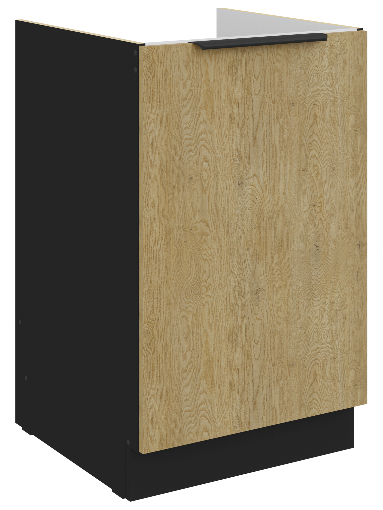 Kolekcja kuchenna CREMA to połączenie minimalistycznego designu z ciepłem naturalnego drewna. Fronty w delikatnym, drewnopodobnym wykończeniu harmonizują z matowymi, czarnymi akcentami, tworząc elegancką i ponadczasową przestrzeń. Geometryczne linie i proste uchwyty podkreślają nowoczesny charakter kolekcji, a przemyślane rozmieszczenie szafek zapewnia maksymalną funkcjonalność nawet w kompaktowej zabudowie. CREMA to idealny wybór dla osób, które cenią praktyczne rozwiązania, subtelną estetykę i ponadczasowy styl. Kolekcja posiada czarne uchwyty aluminiowe, które dodają elegancji i stylu. Dzięki systemowi cichego domykania frontów i szuflad, korzystanie z mebli jest wygodne oraz ergonomiczne. Meble kuchenne CREMA to doskonały wybór dla osób poszukujących nowoczesnego i funkcjonalnego wystroju kuchni. Szafki jednodrzwiowe są uniwersalne, o stronie otwierania można zdecydować przy montażu. Miejsca na uchwyty naznaczone nieprzelotowo od wewnątrz. Meble do samodzielnego montażu, według przejrzystej instrukcji.