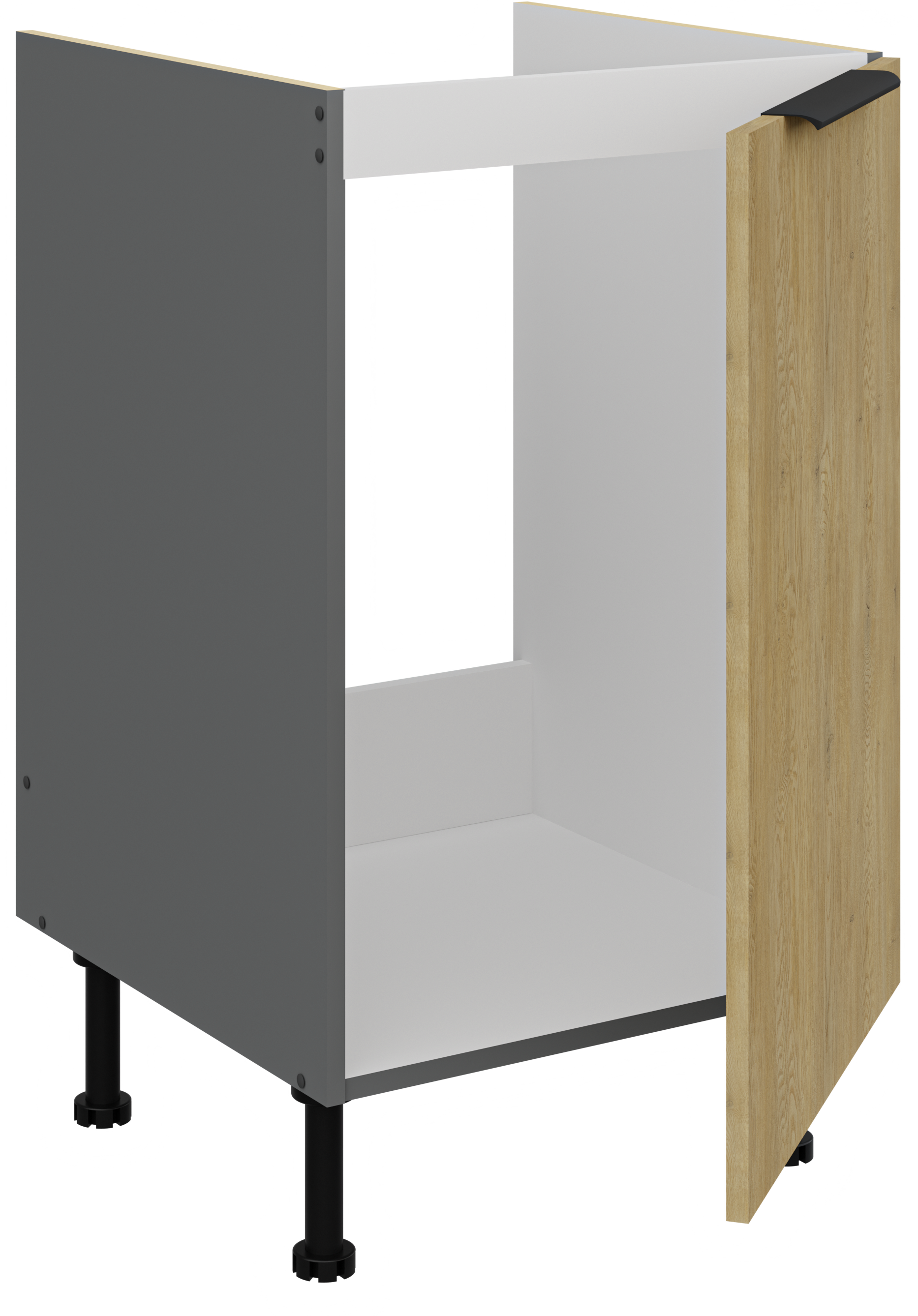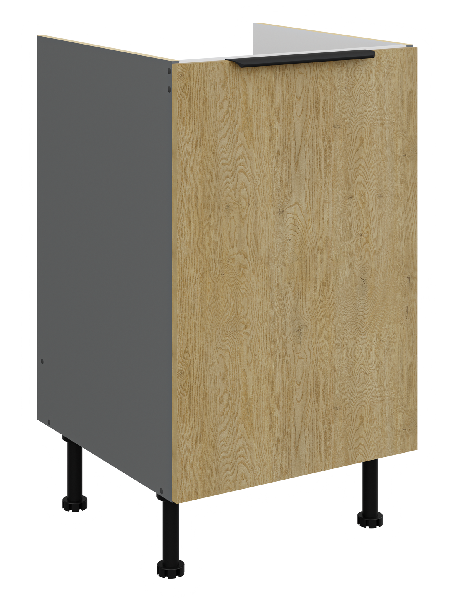 Kolekcja kuchenna CREMA to połączenie minimalistycznego designu z ciepłem naturalnego drewna. Fronty w delikatnym, drewnopodobnym wykończeniu harmonizują z matowymi, antracytowymi akcentami, tworząc elegancką i ponadczasową przestrzeń. Geometryczne linie i proste uchwyty podkreślają nowoczesny charakter kolekcji, a przemyślane rozmieszczenie szafek zapewnia maksymalną funkcjonalność nawet w kompaktowej zabudowie. CREMA to idealny wybór dla osób, które cenią praktyczne rozwiązania, subtelną estetykę i ponadczasowy styl. Kolekcja posiada czarne uchwyty aluminiowe, które dodają elegancji i stylu. Dzięki systemowi cichego domykania frontów i szuflad, korzystanie z mebli jest wygodne oraz ergonomiczne. Dodatkowym atutem są regulowane nogi. Meble kuchenne CREMA to doskonały wybór dla osób poszukujących nowoczesnego i funkcjonalnego wystroju kuchni. Szafki jednodrzwiowe są uniwersalne, o stronie otwierania można zdecydować przy montażu. Miejsca na uchwyty naznaczone nieprzelotowo od wewnątrz. Meble do samodzielnego montażu, według przejrzystej instrukcji.
