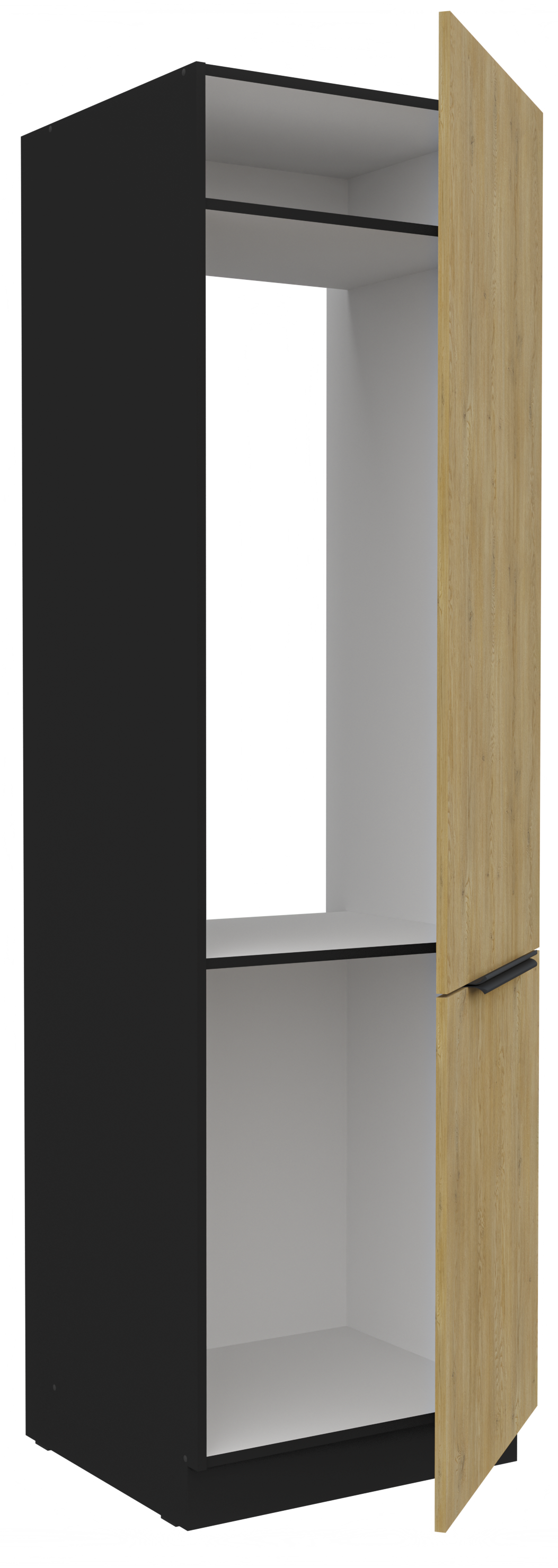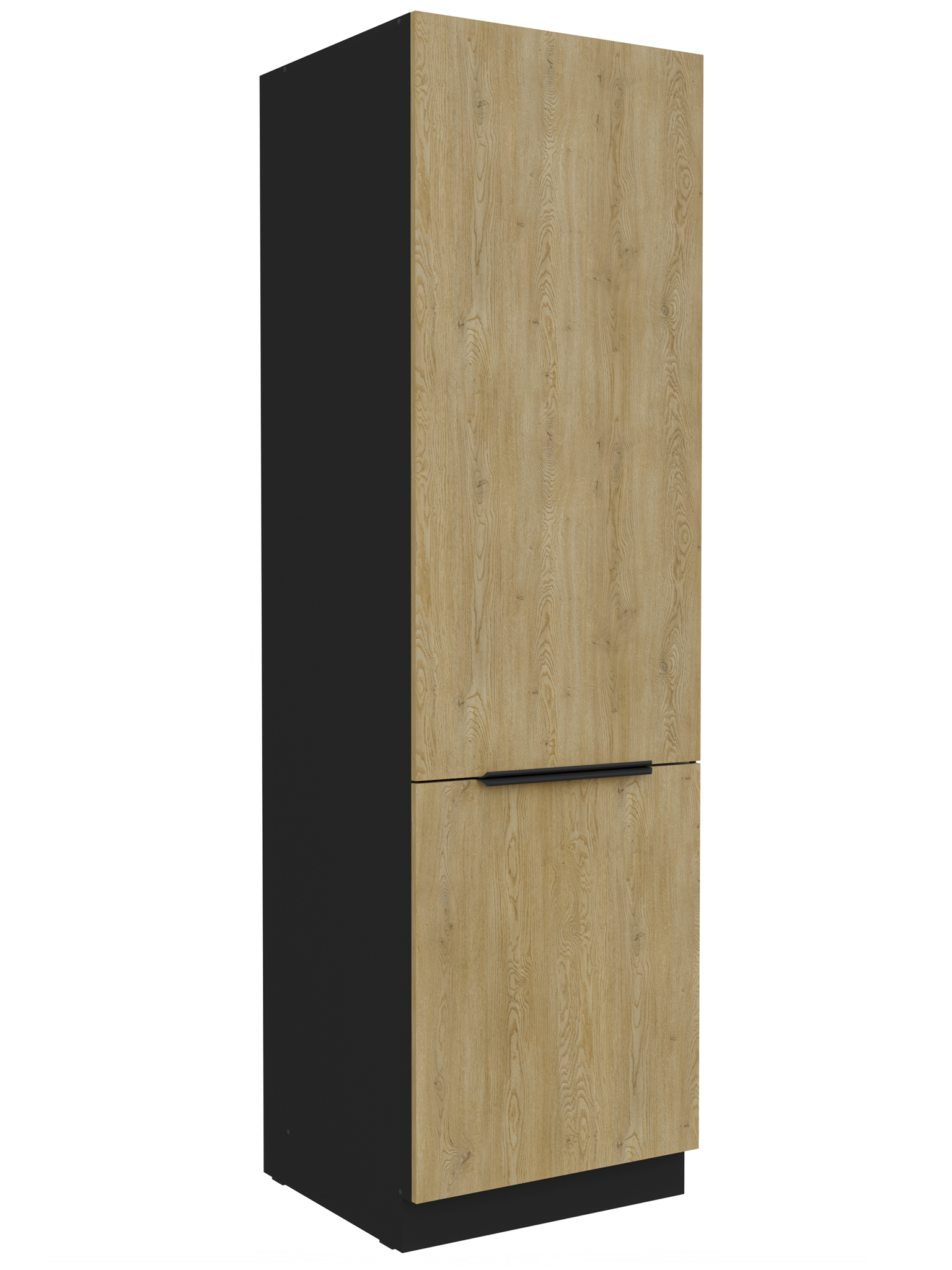 Kolekcja kuchenna CREMA to połączenie minimalistycznego designu z ciepłem naturalnego drewna. Fronty w delikatnym, drewnopodobnym wykończeniu harmonizują z matowymi, czarnymi akcentami, tworząc elegancką i ponadczasową przestrzeń. Geometryczne linie i proste uchwyty podkreślają nowoczesny charakter kolekcji, a przemyślane rozmieszczenie szafek zapewnia maksymalną funkcjonalność nawet w kompaktowej zabudowie. CREMA to idealny wybór dla osób, które cenią praktyczne rozwiązania, subtelną estetykę i ponadczasowy styl. Kolekcja posiada czarne uchwyty aluminiowe, które dodają elegancji i stylu. Dzięki systemowi cichego domykania frontów i szuflad, korzystanie z mebli jest wygodne oraz ergonomiczne. Meble kuchenne CREMA to doskonały wybór dla osób poszukujących nowoczesnego i funkcjonalnego wystroju kuchni. Szafki jednodrzwiowe są uniwersalne, o stronie otwierania można zdecydować przy montażu. Miejsca na uchwyty naznaczone nieprzelotowo od wewnątrz. Meble do samodzielnego montażu, według przejrzystej instrukcji.